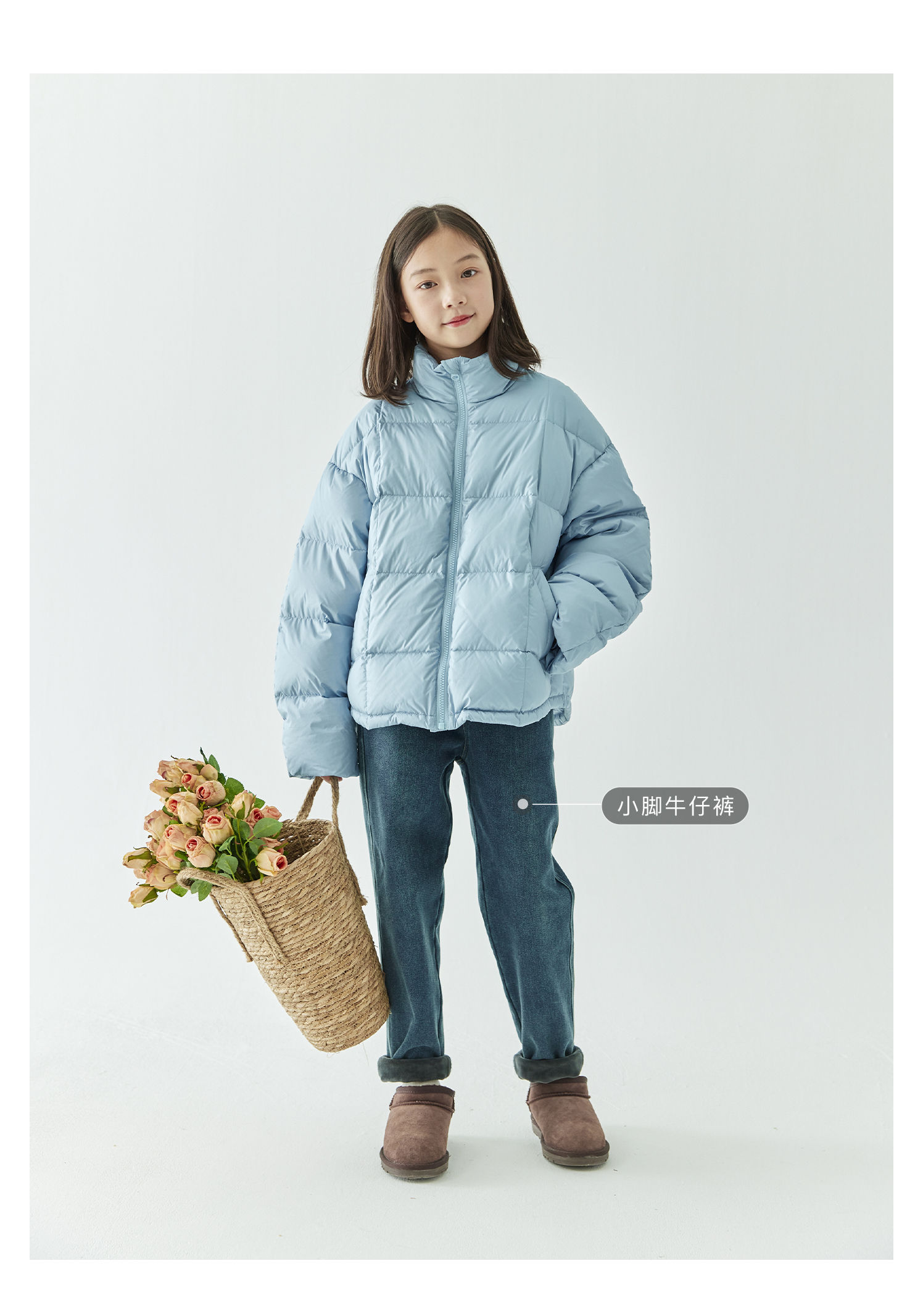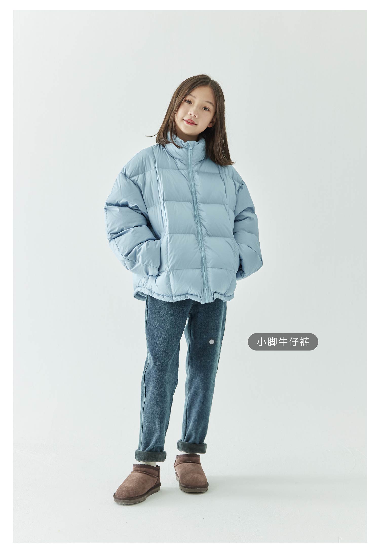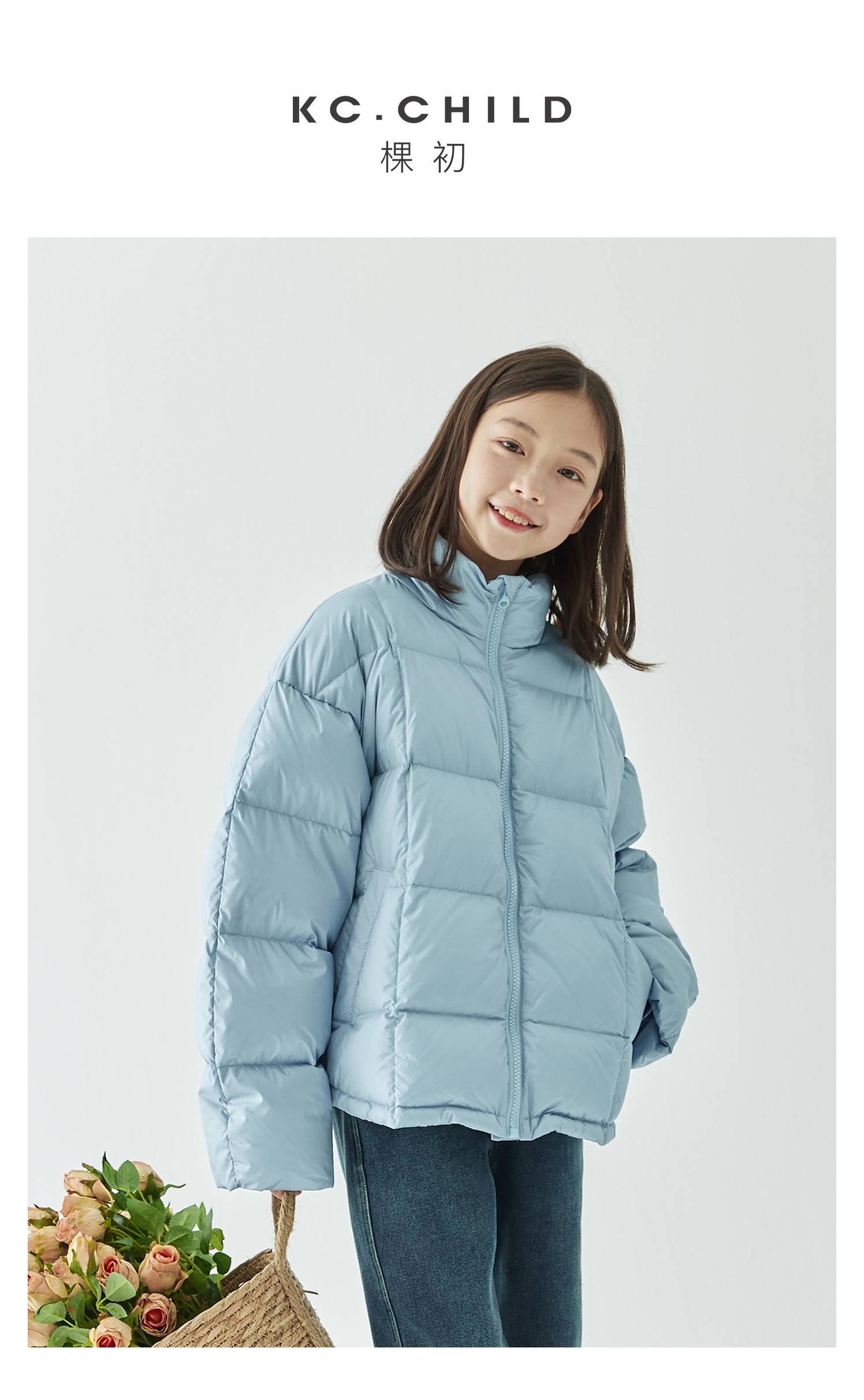 棵初2024年冬季新款童装防泼水防钻绒立领羽绒服女童轻柔保暖外套
