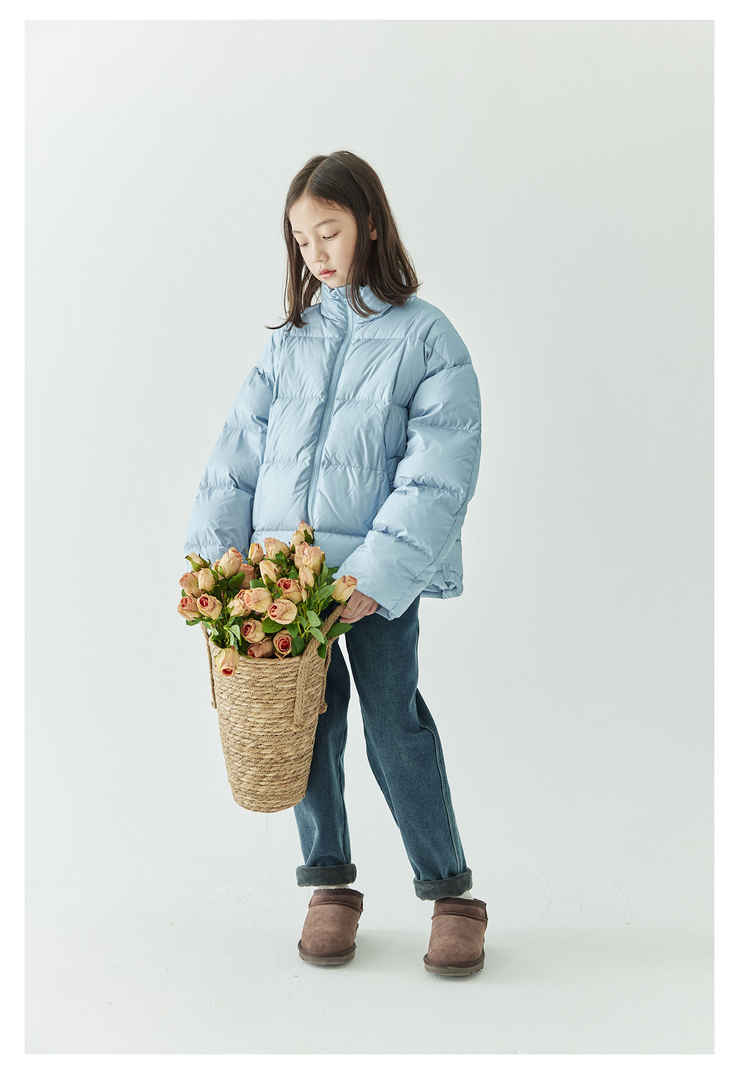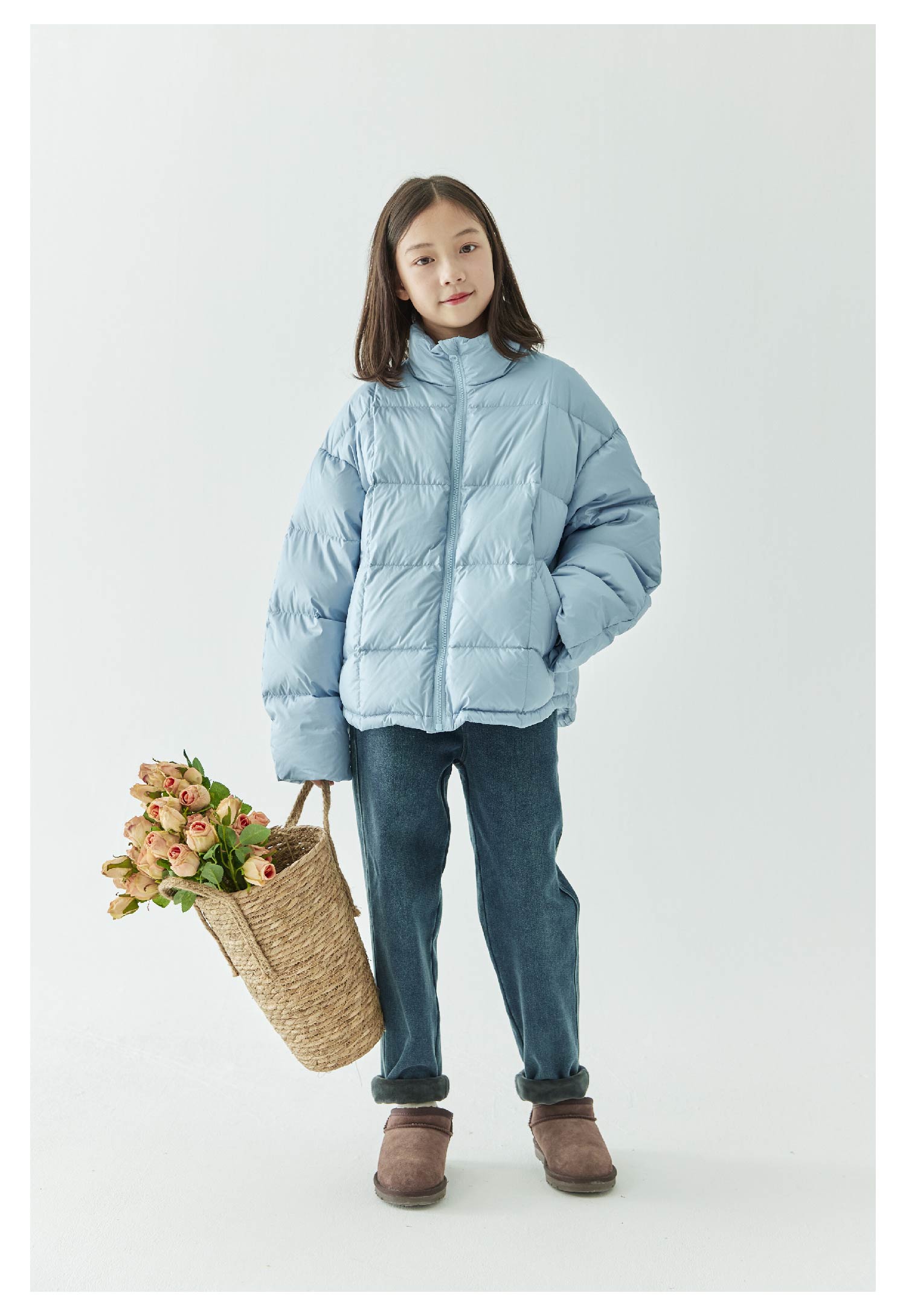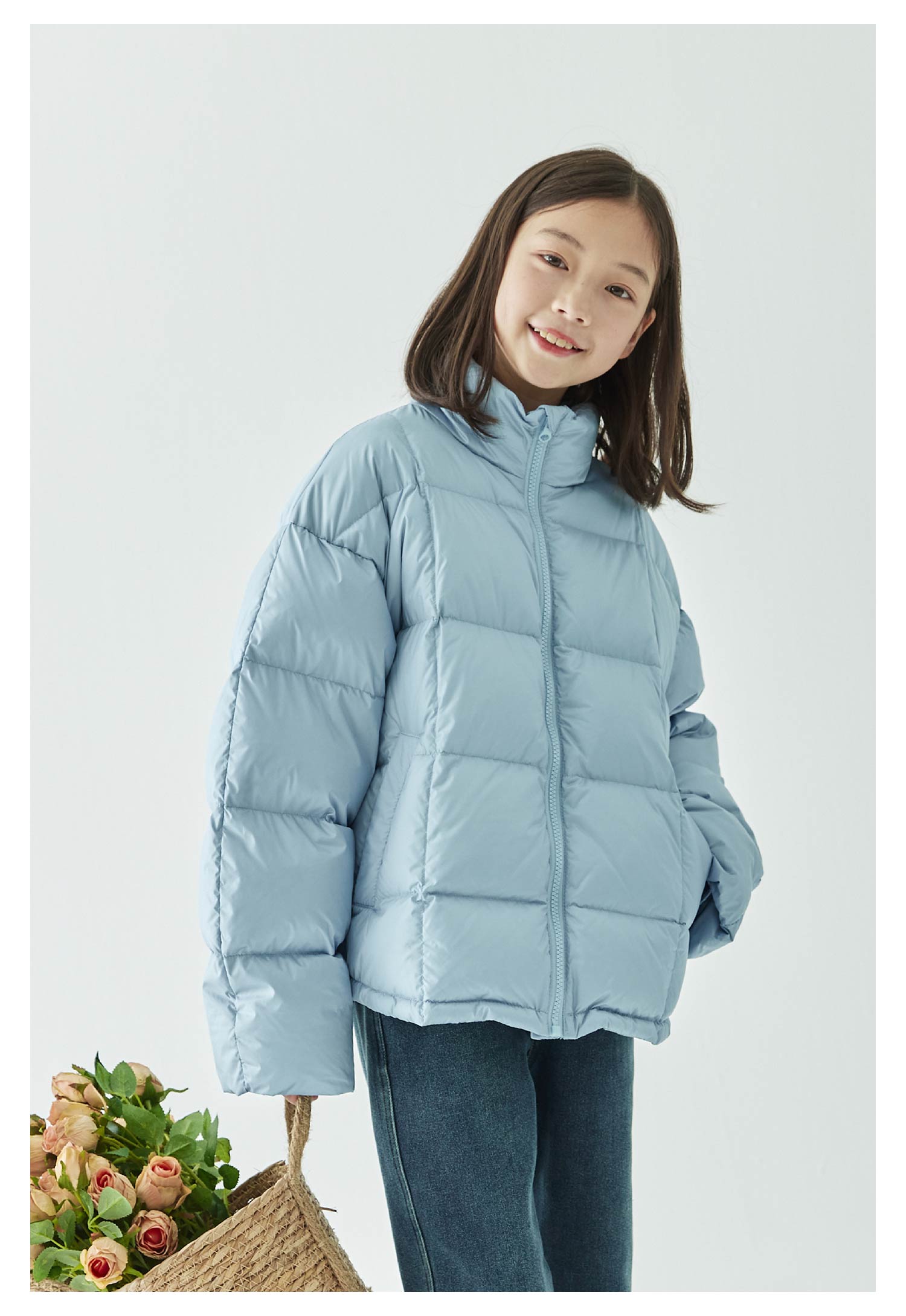 棵初2024年冬季新款童装防泼水防钻绒立领羽绒服女童轻柔保暖外套