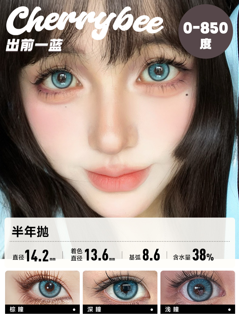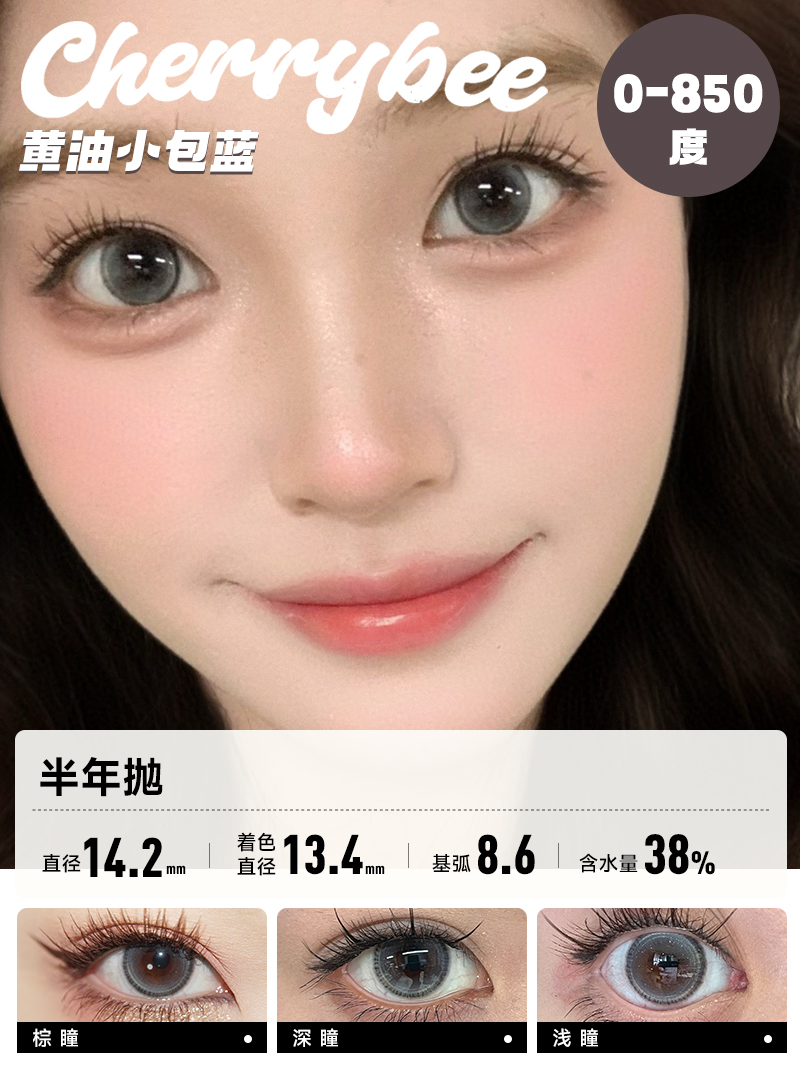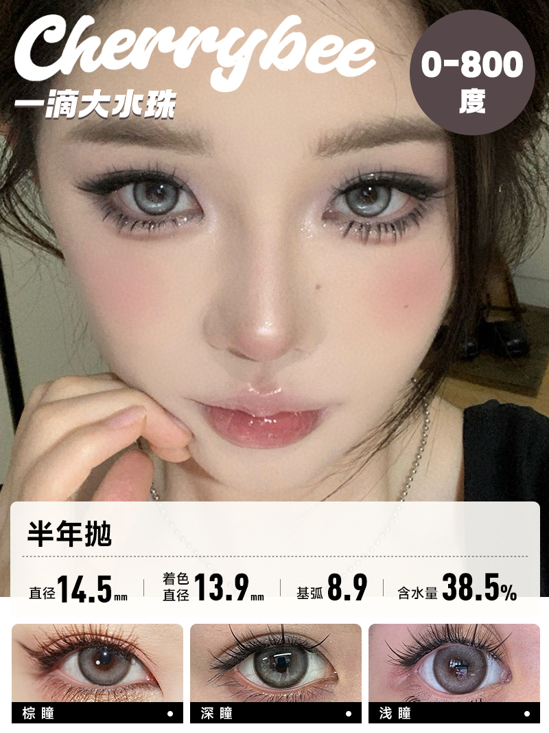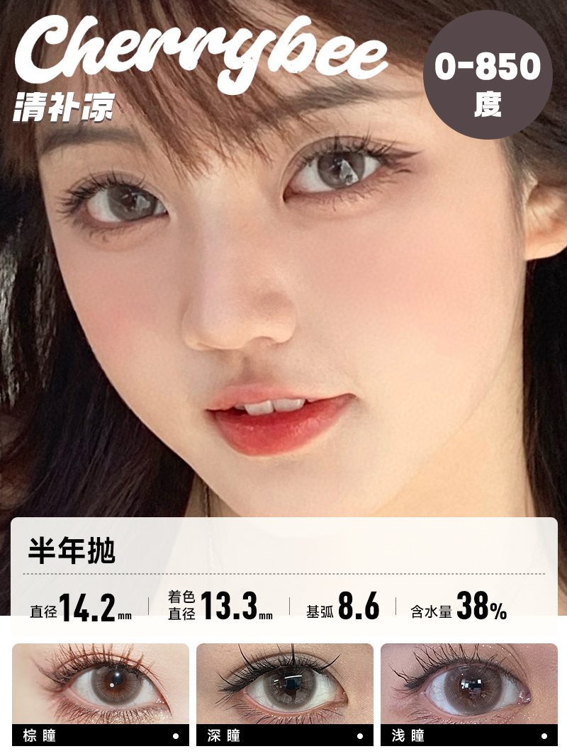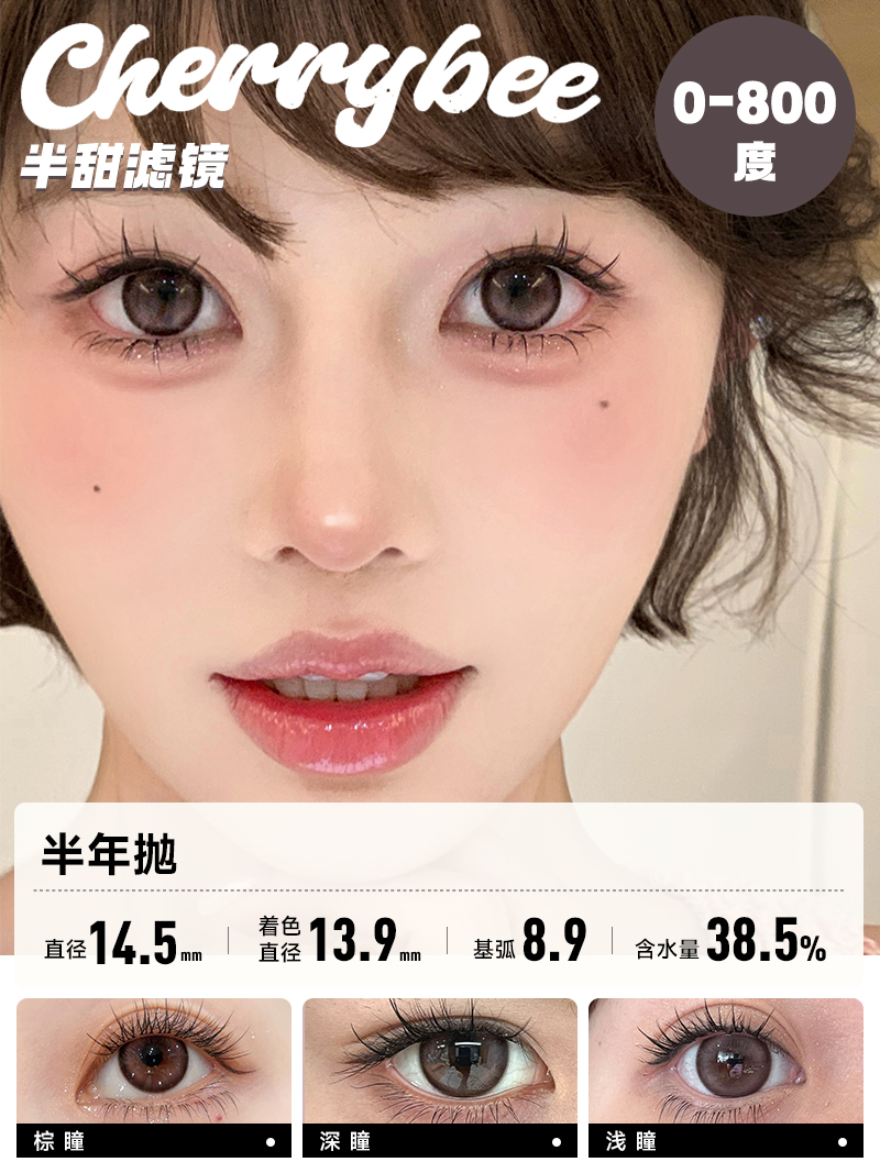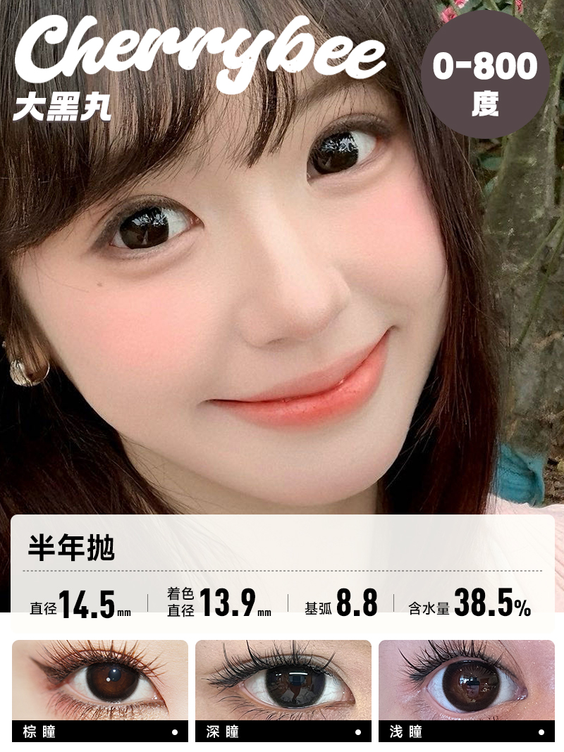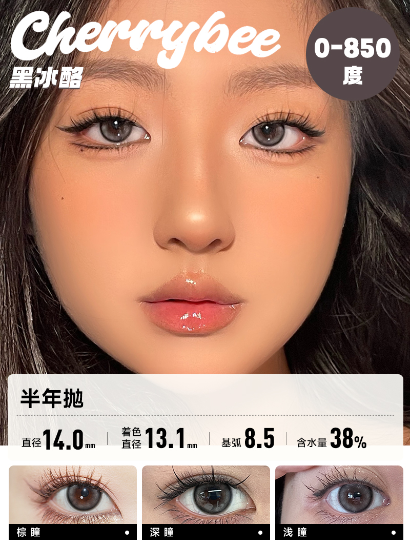 CHERRYBEE / 半年抛合集 / 半甜滤镜/大黑丸/黑冰酪/生酪黑茶/出前一蓝 / 2片入 / 14.0mm-14.2mm-14.5mm
