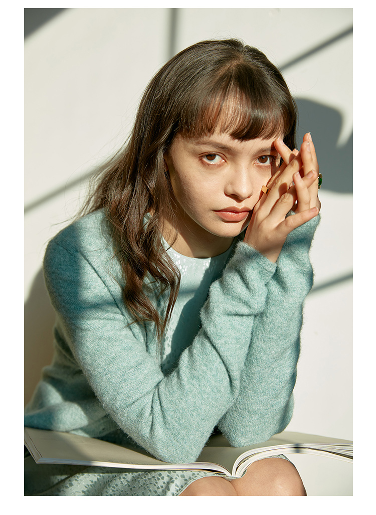 材质精选1/12支环保纤维纱线 98%环保纤维柔软、绵密超Q弹 绒绒的质感弱化了针织纹理的厚重 整体更为轻盈细腻。 在外观上也极尽简约视觉效果 |