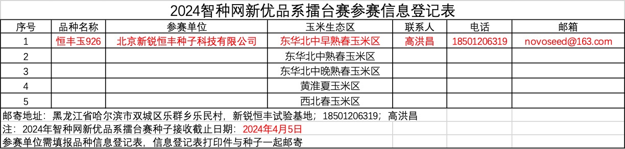 参赛单位需填报品种信息登记表,信息登记表打印件请与种子一同邮寄