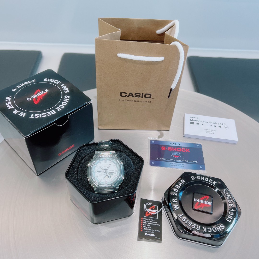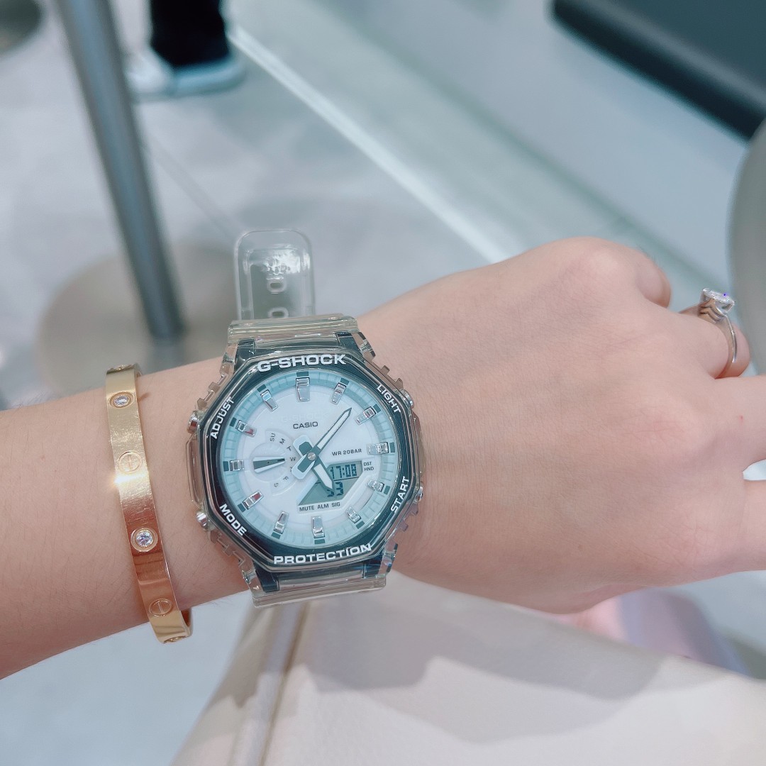 极简百搭,为你的出街 Look 增添别样风采;GMA-S2100SK-1A 冰晶灰透射科技感,玩转未来时尚主义。