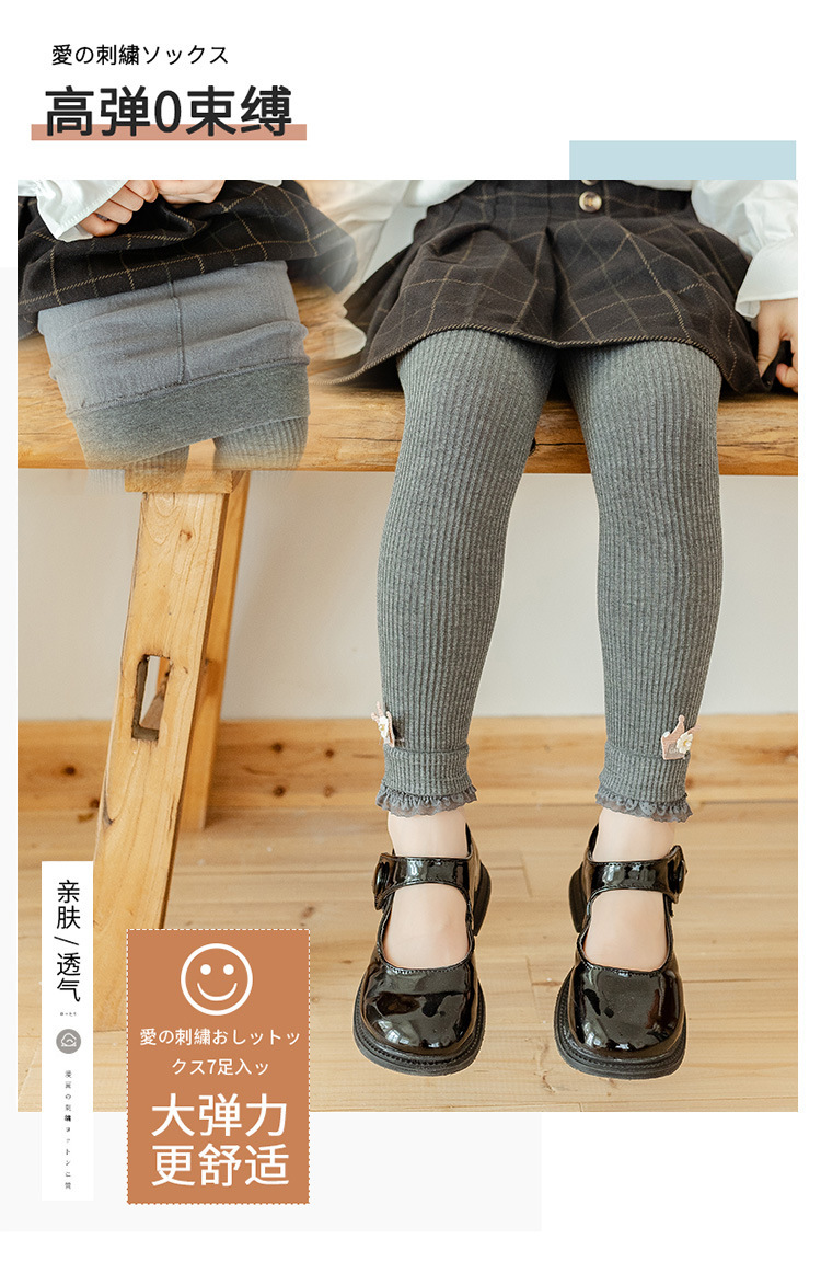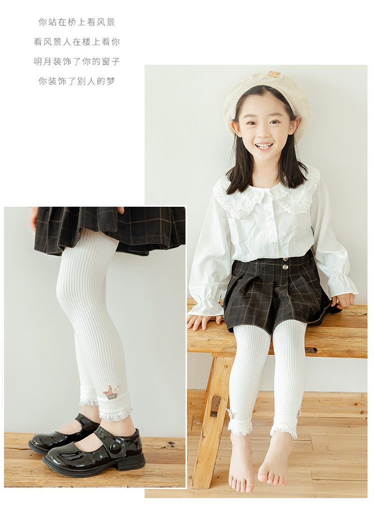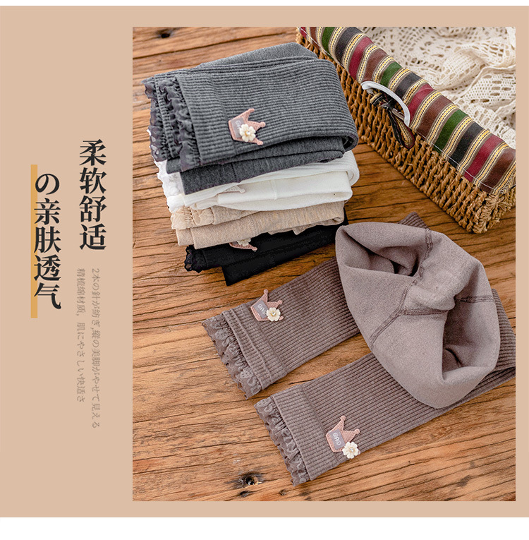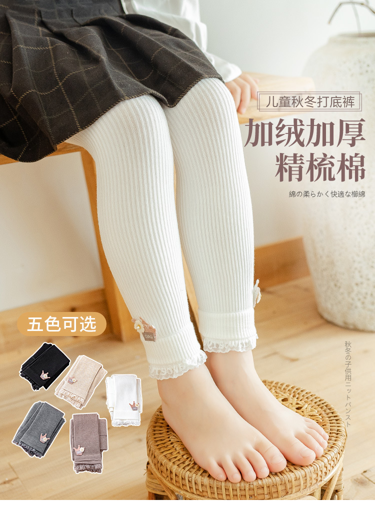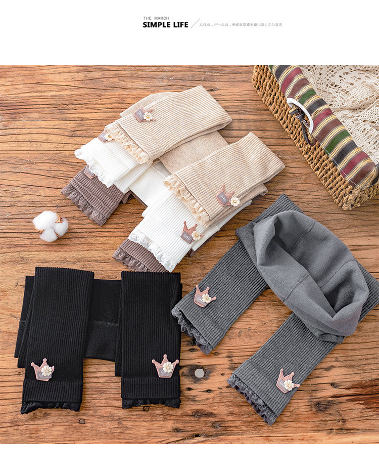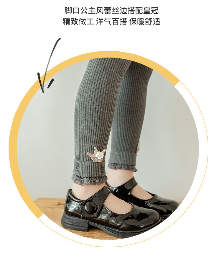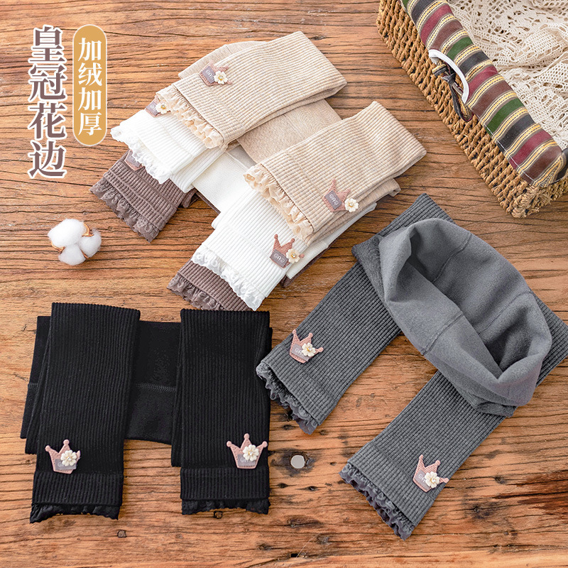 【儿童秋冬打底裤,加绒加厚精梳棉】薄绒秋冬女童打底裤外穿 婴儿绒洋气宝宝 儿童磨毛皇冠九分长袜裤-QQ