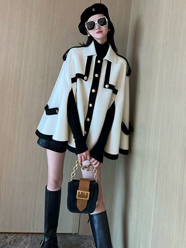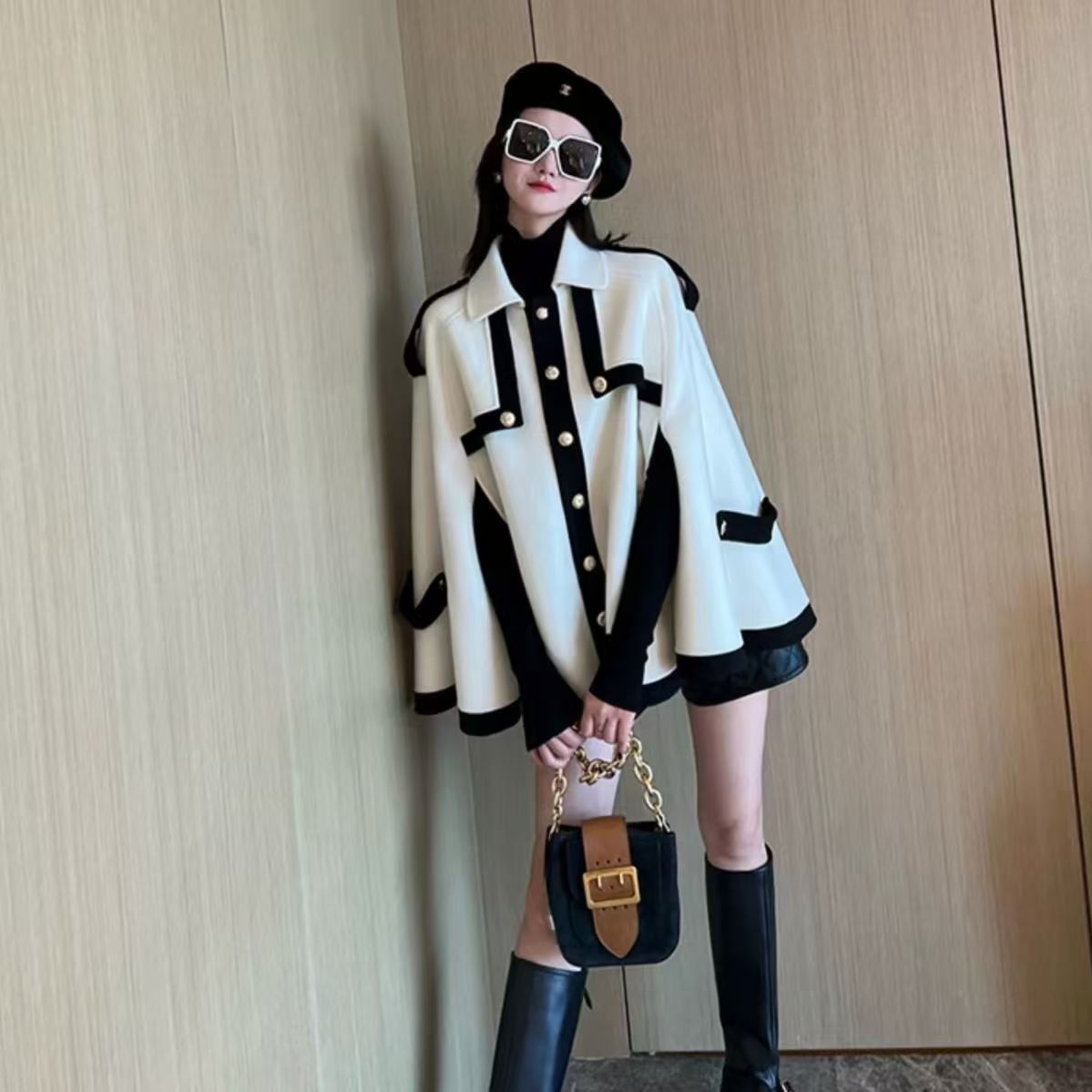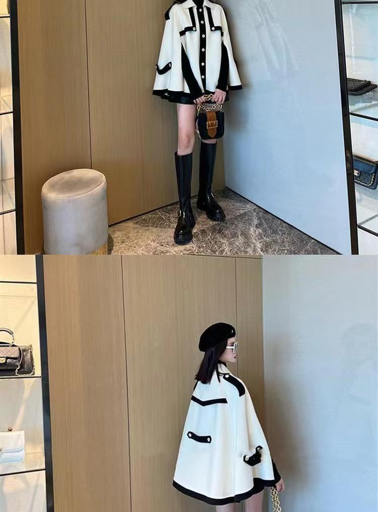 小香风斗篷外套女2024秋冬新款赫本风高级感宽松羊绒法式短款大衣