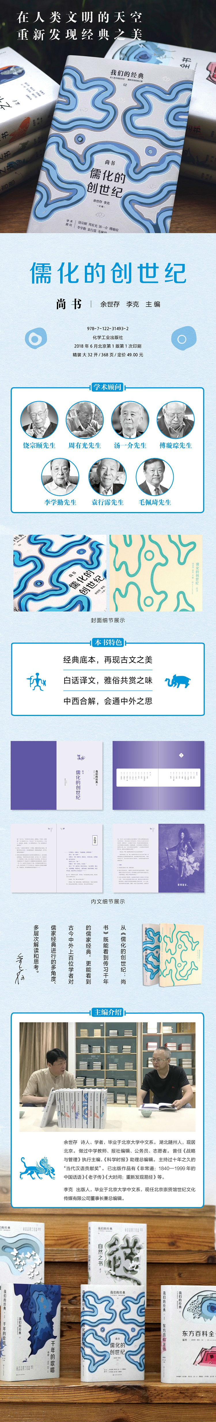 余世存,学者、诗人,毕业于北京大学中文系,曾任《战略与管理》执行主编,主持过十年之久的“当代汉语贡献奖”。著有《非常道》《中国男》《老子传》《大民小国》等。多年来,致力于社会重建和经典社会化的相关工作。 李克,出版人,毕业于北京大学中文系,曾负责《国务院古籍整理简报》的编辑和出版,现任北京崇贤馆世纪文化传媒有限公司董事长兼总编辑。先后策划并主编的出版项目有《唐宋八大家全集》《康熙字典》《说文解字》《中国书法全集》《百衲本二十四史》《中国通史》等。