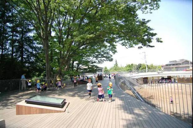 藤幼儿园是一所罕见的“夏令营式”的幼儿园,户外活动和教学构成了重要的园所特色。在这里,幼儿不会有太重的知识学习负担,户外给孩子们提供了充分的探索空间和各种仪式化的活动举办场地。幼儿园结合幼儿的天性与发展,不仅让幼儿充分接触自然的神奇与美妙,还设置了一系列别具一格的游戏,将日本学前教育界提倡的“让幼儿自由自在地游戏”观念贯彻到园所日常教学中去。周长为183米的椭圆形建筑屋顶是藤幼儿园的标志。屋顶上平坦而空旷,没有色彩鲜艳的娱乐设施,只有几个方形的木头箱子。为什么要设计成椭圆形?“因为小孩子喜欢绕着圆圈跑,这样的设计能鼓励孩子奔跑的天性,增加他们的运动量”,校长说,“我不刻意培养他们,我就只是让他们在屋顶上,他们就像羊一样会自己一直跑。”因为有了这个屋顶操场,每天奔跑的路程是平均4公里,相当于一个足球运动员平均的奔跑路程。而有些活泼的孩子,甚至在早上的20分钟能够跑上6公里。除了奔跑之外,空白的场地促使孩子们发明各种玩法。可见,藤幼儿园独特的办园理念体现在很多细微之处的环境设置细节上,比如穿过屋舍的大树、没有墙的教室、一大片沙地和高低不平的操场,还有固定鞋印、收纳柜帮助幼儿养成收纳整理及自主规控的良好行为习惯。这些独具匠心的设置让人眼前一亮。作为一所兴办数十年的蒙台梭利幼儿园,藤幼儿园将日常生活作为“儿童发展”起点,区别了其他以文化知识为中心的教育,将日常生活练习作为“感觉教育”的出发点。操场边水管的水龙头需要用手拧,让幼儿学会控制水量的大小。除此以外,园中每间教室都是用裸露的灯泡照明,由灯绳控制灯的亮度,这种设计便于老师给每名幼儿讲解灯的发光原理。所以,从藤幼儿园毕业的孩子都知道灯为什么发光,也知道灯和开关之间的关系。