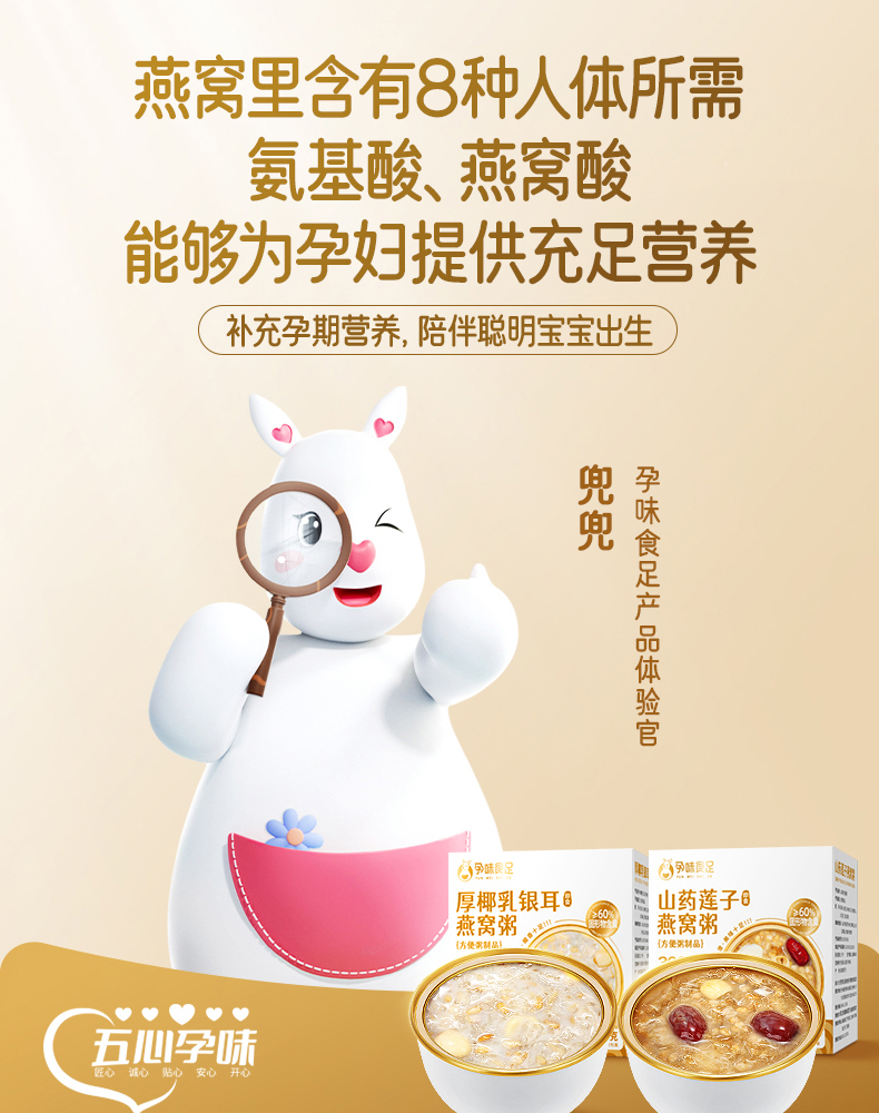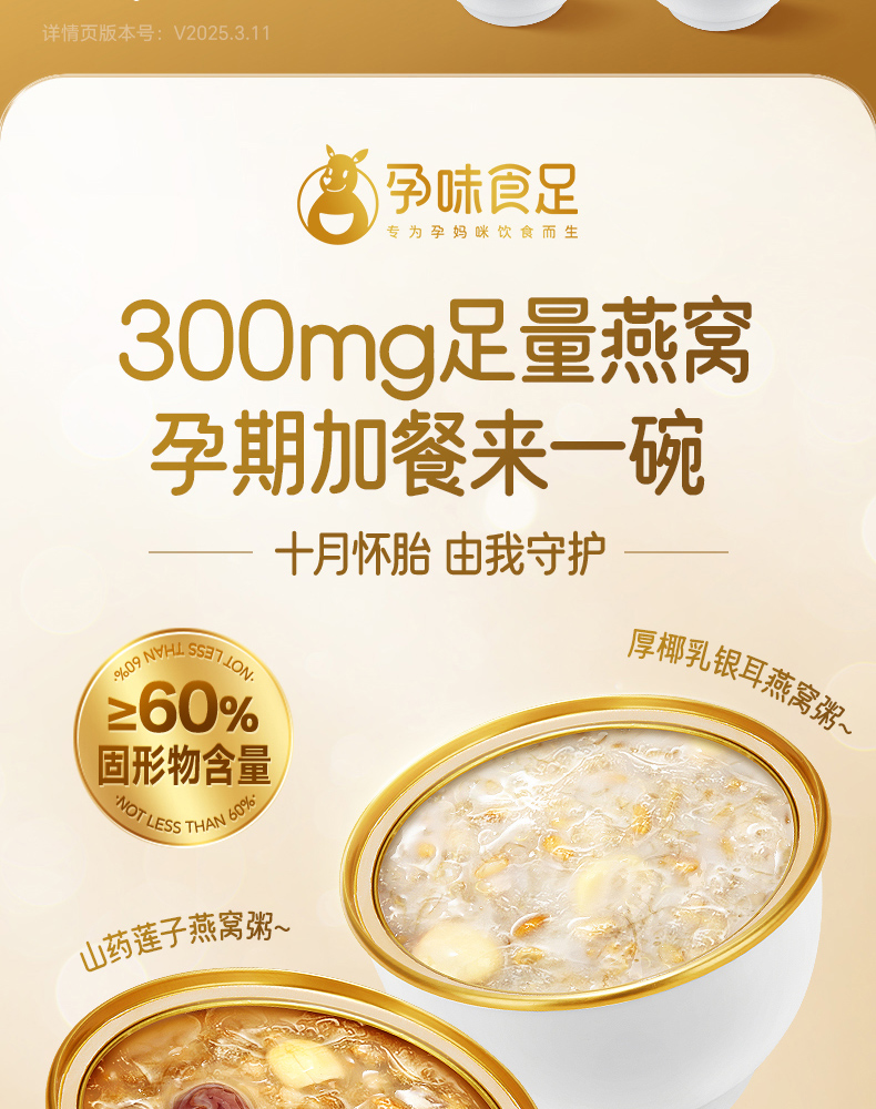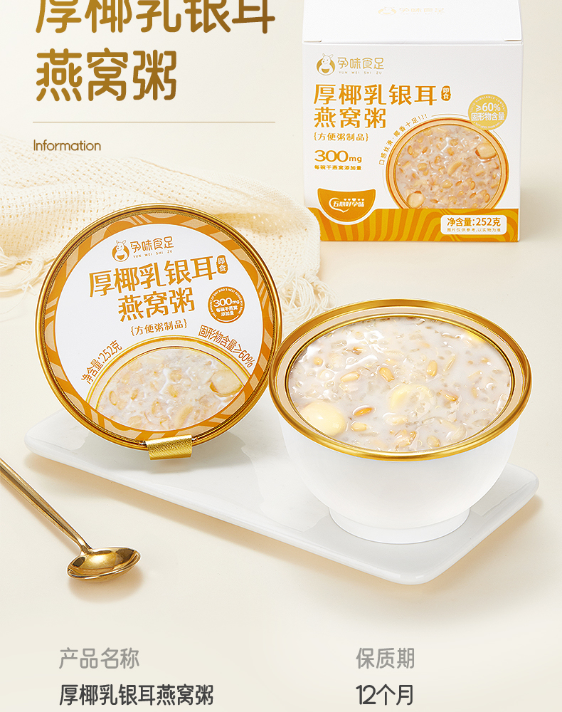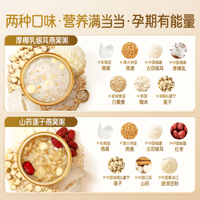 【品牌自营】孕味食足孕妇适合吃的燕窝粥厚椰乳 即食方便速食山药银耳免煮营养早代餐粥