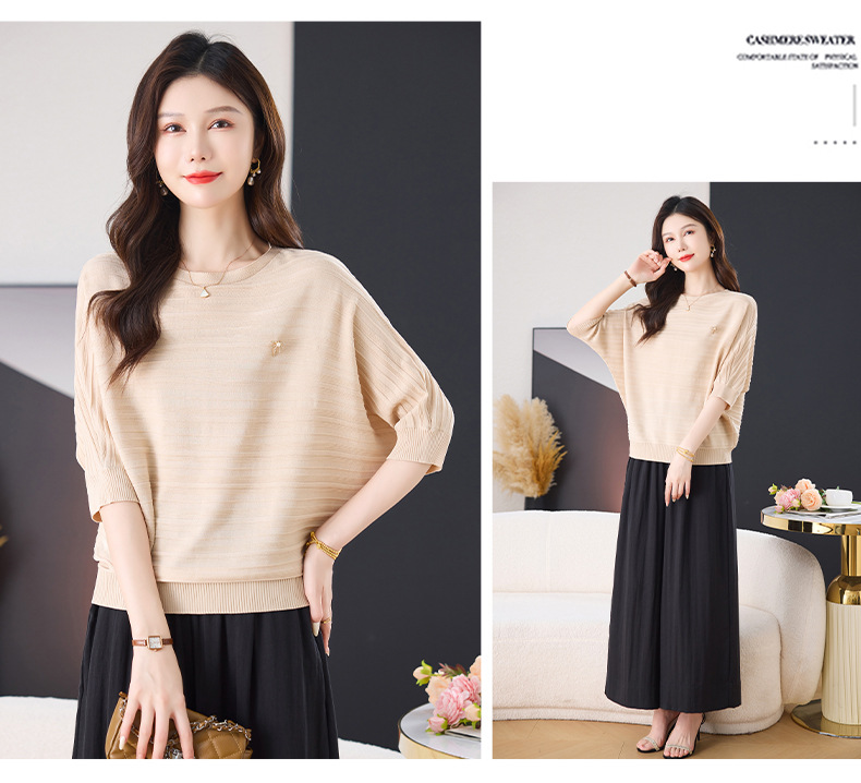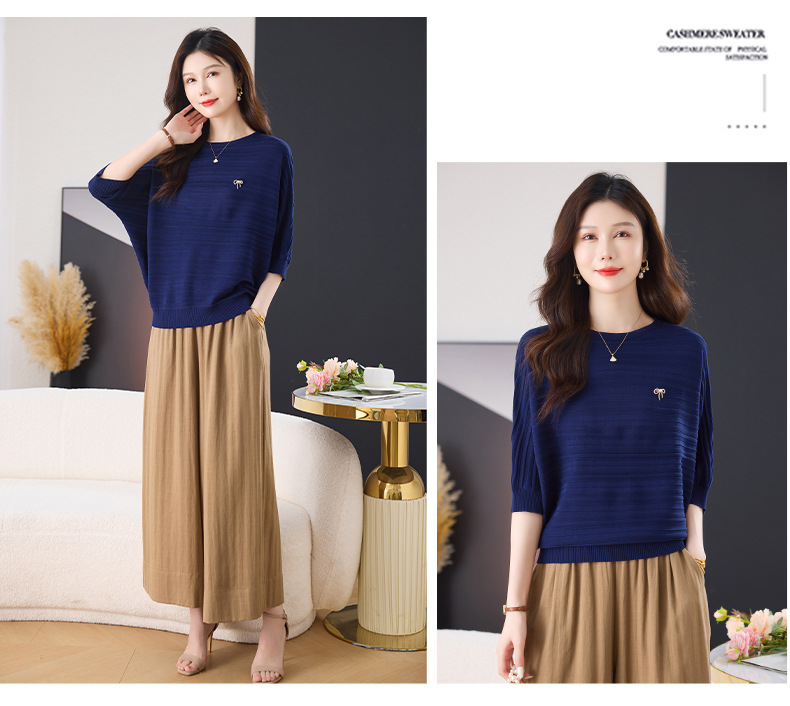 CC套装时髦洋气蝙蝠衫宽松遮肚子洋气针织衫裤子两件套