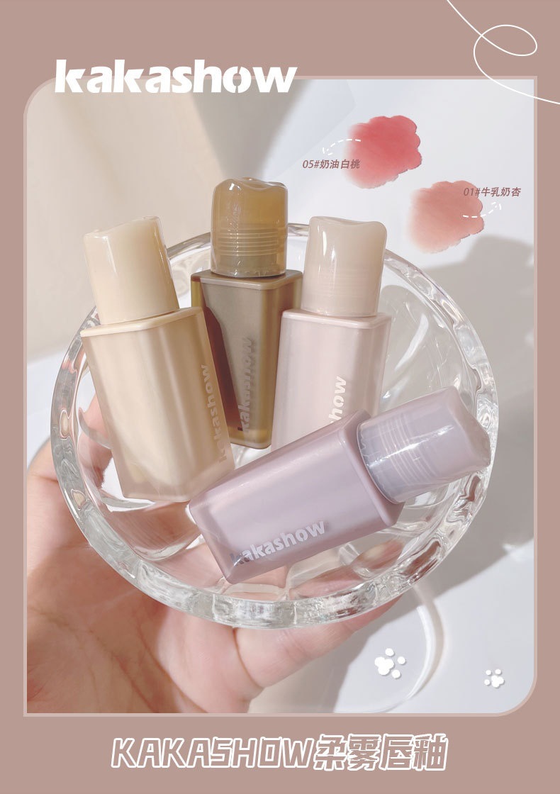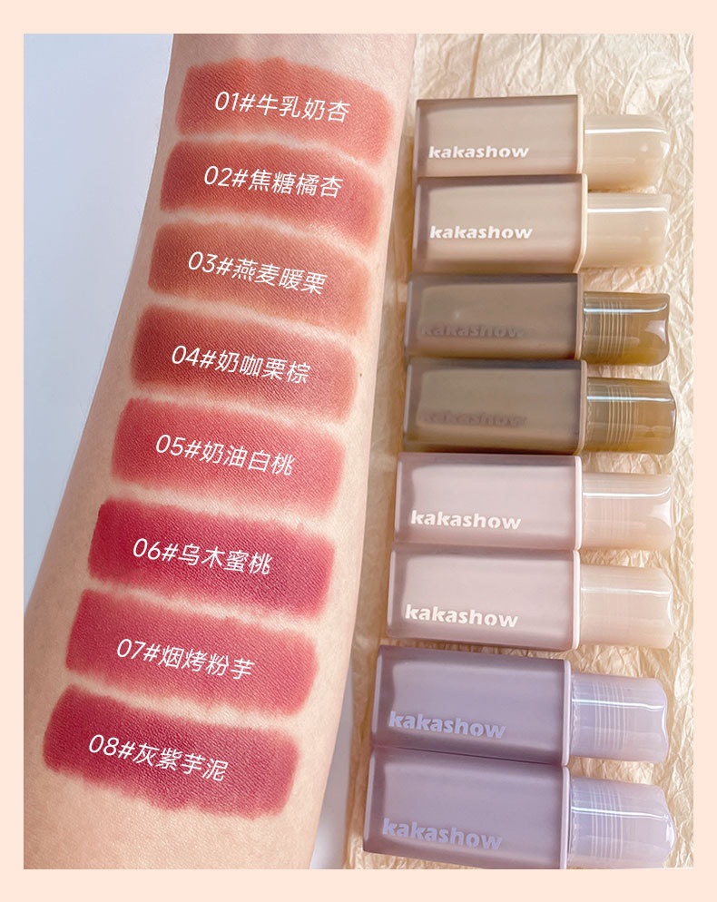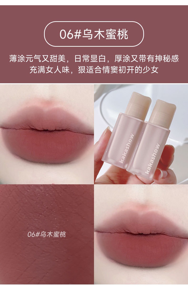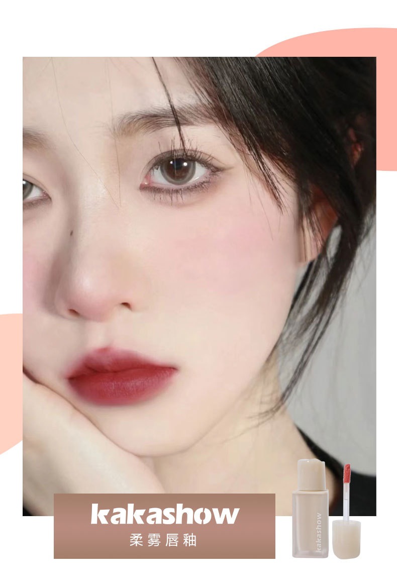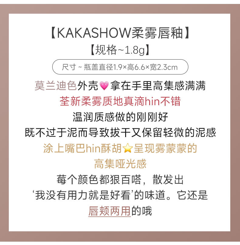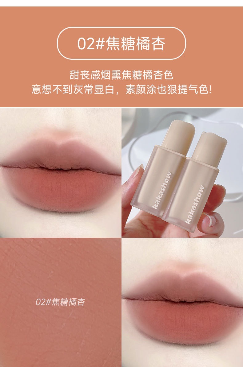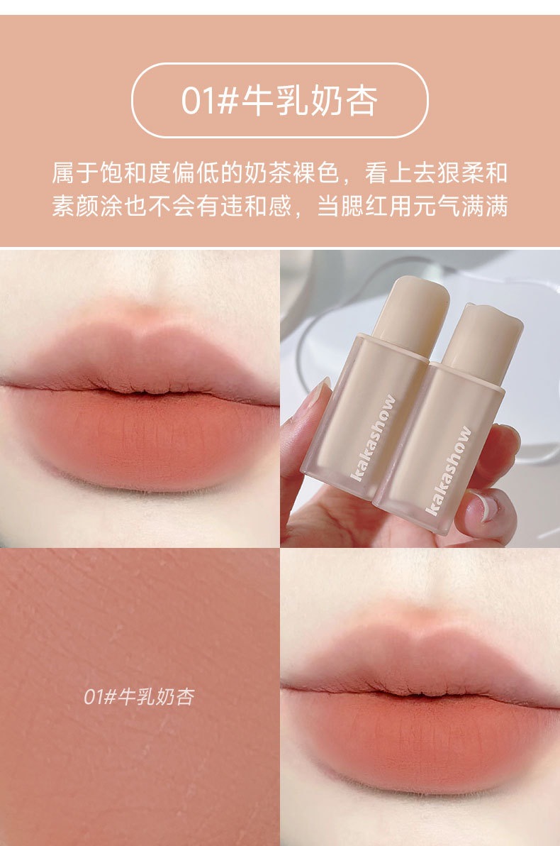 【唇颊两用!提气色】kakashow粉雾裸色唇釉原生夏日哑光雾面唇泥显白不易沾杯柔雾口红。xa