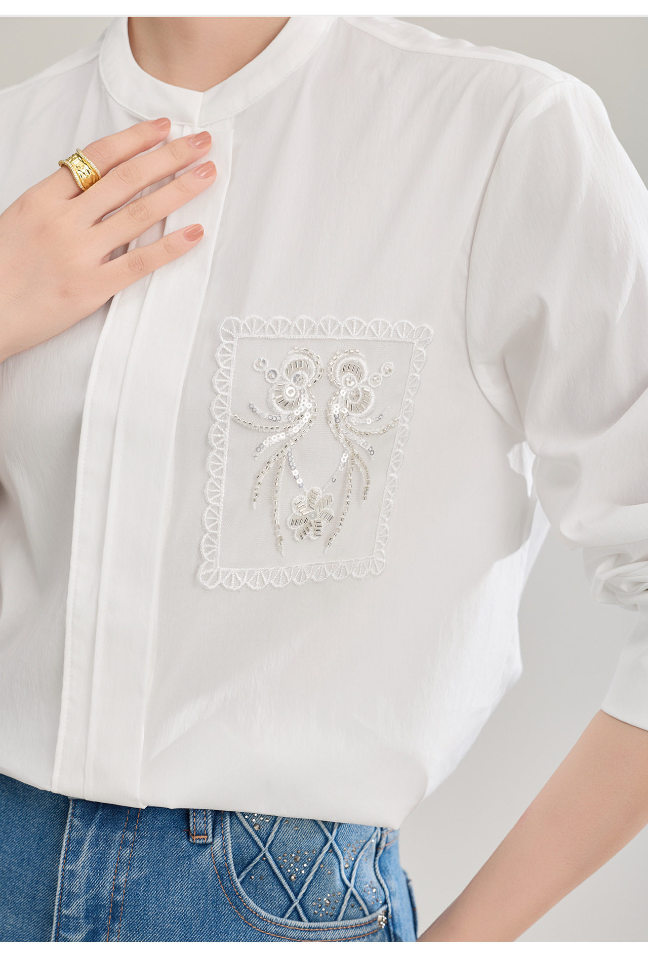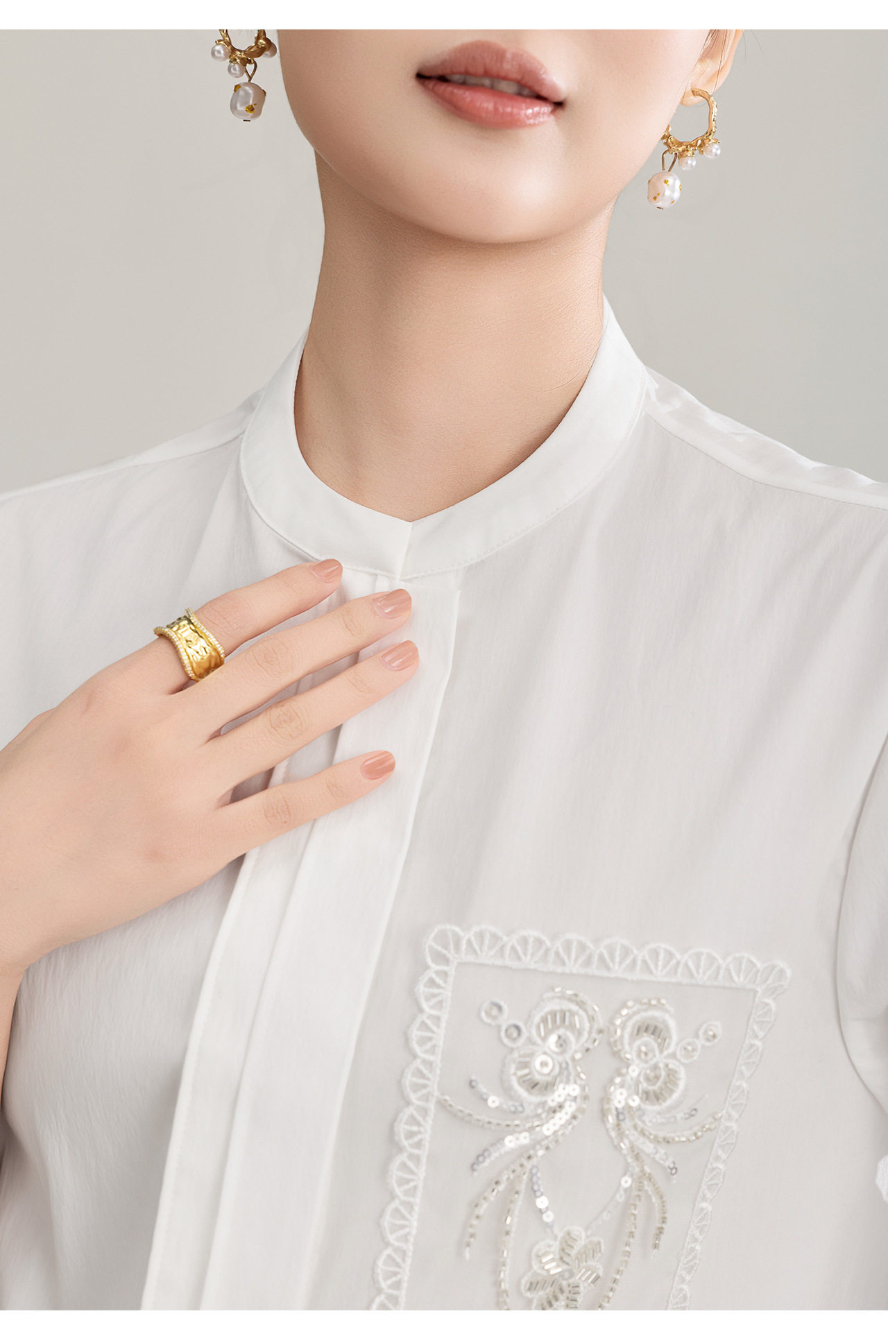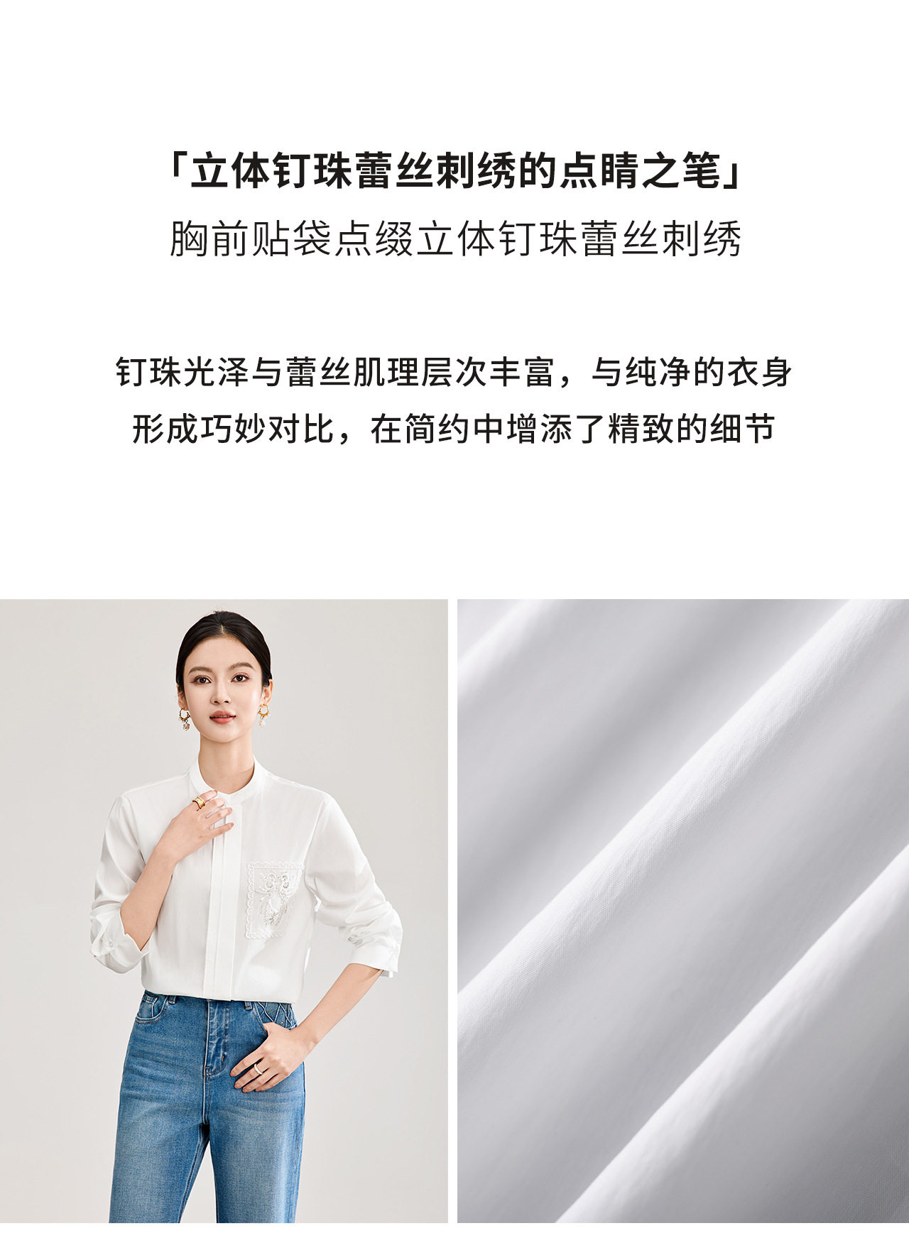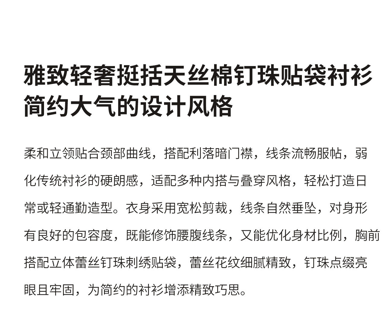 「高货wl」全新升级【铂金会员275/天猫369/差价94】(12230)洛诗琳2026春季新款简约淡雅天丝棉钉珠亮片刺绣长袖衬衫