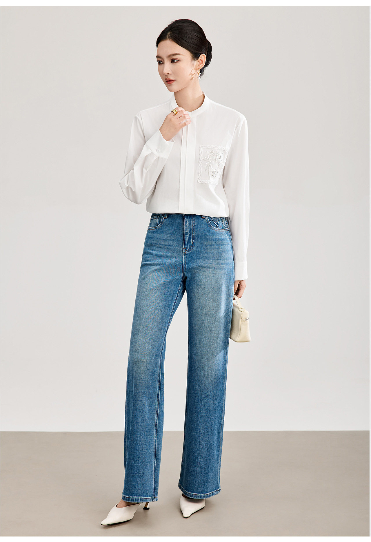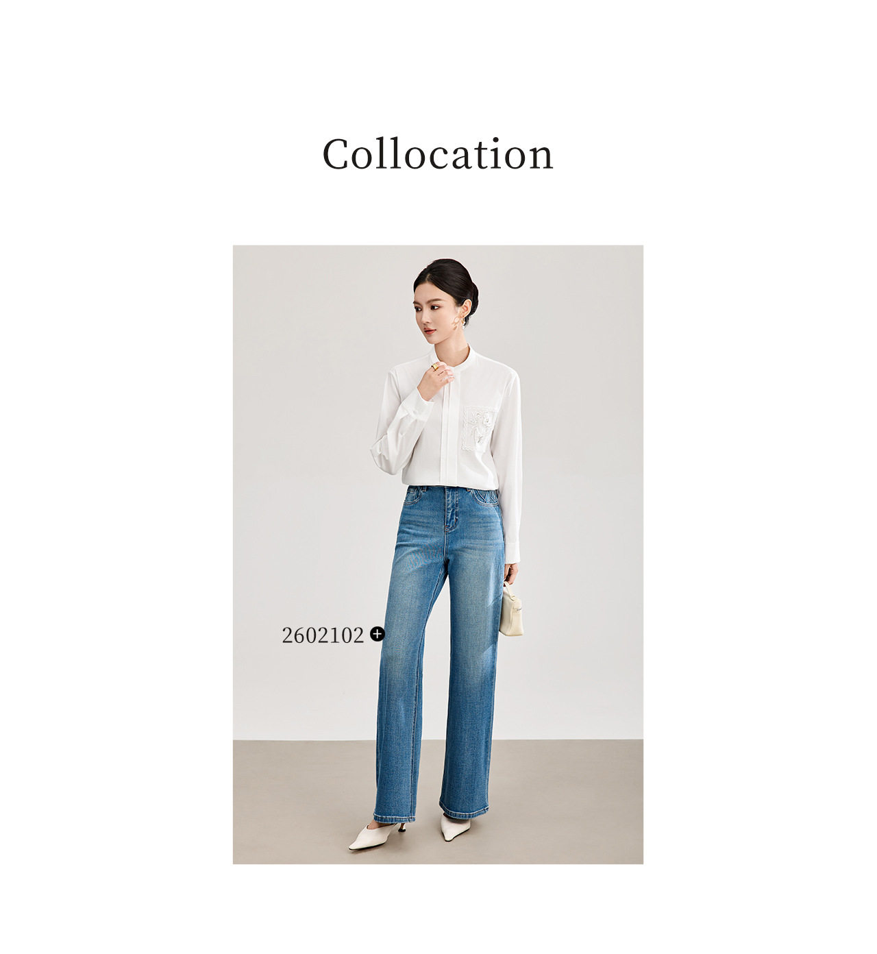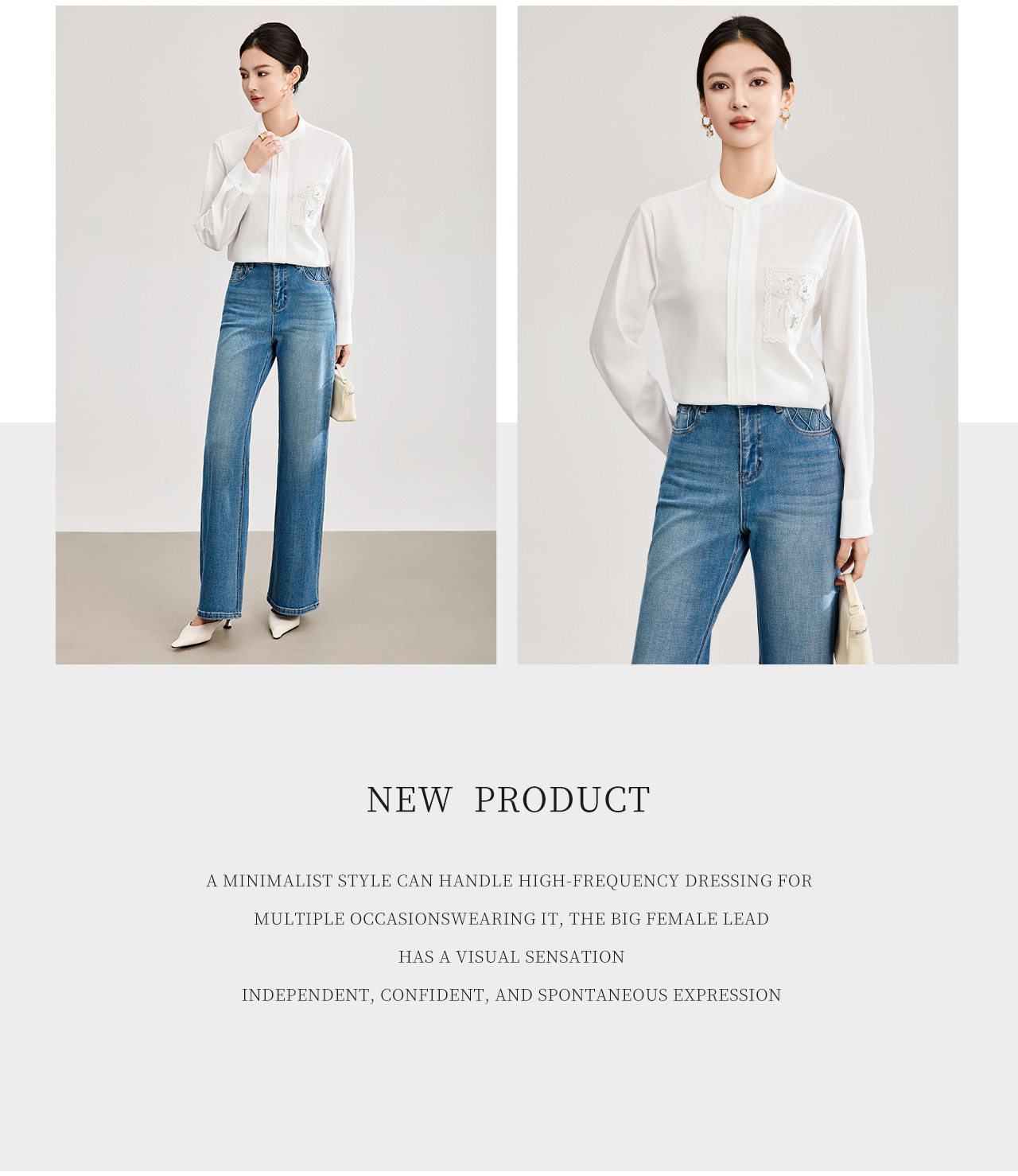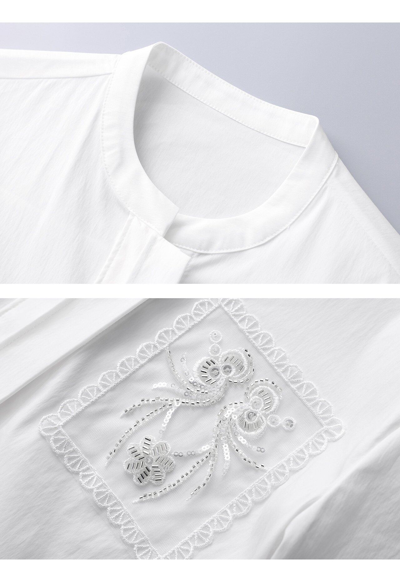 「高货wl」全新升级【铂金会员275/天猫369/差价94】(12230)洛诗琳2026春季新款简约淡雅天丝棉钉珠亮片刺绣长袖衬衫