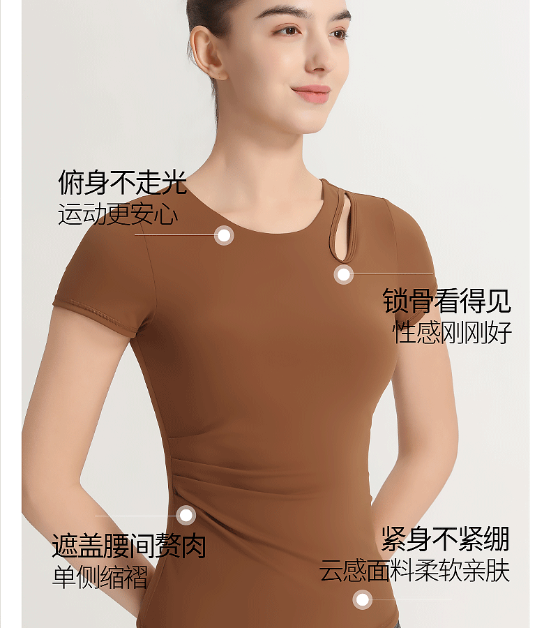 (断码清仓)梵美人 F1155R 瑜伽短袖 带胸垫 云糯柔感