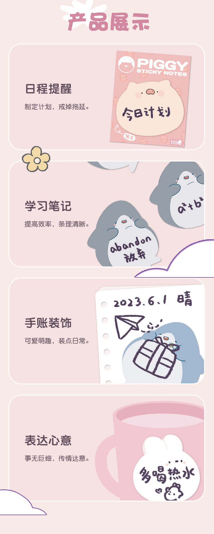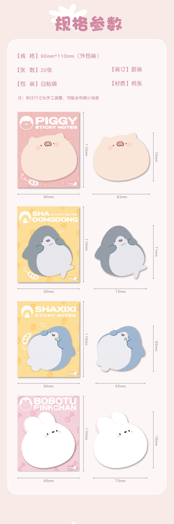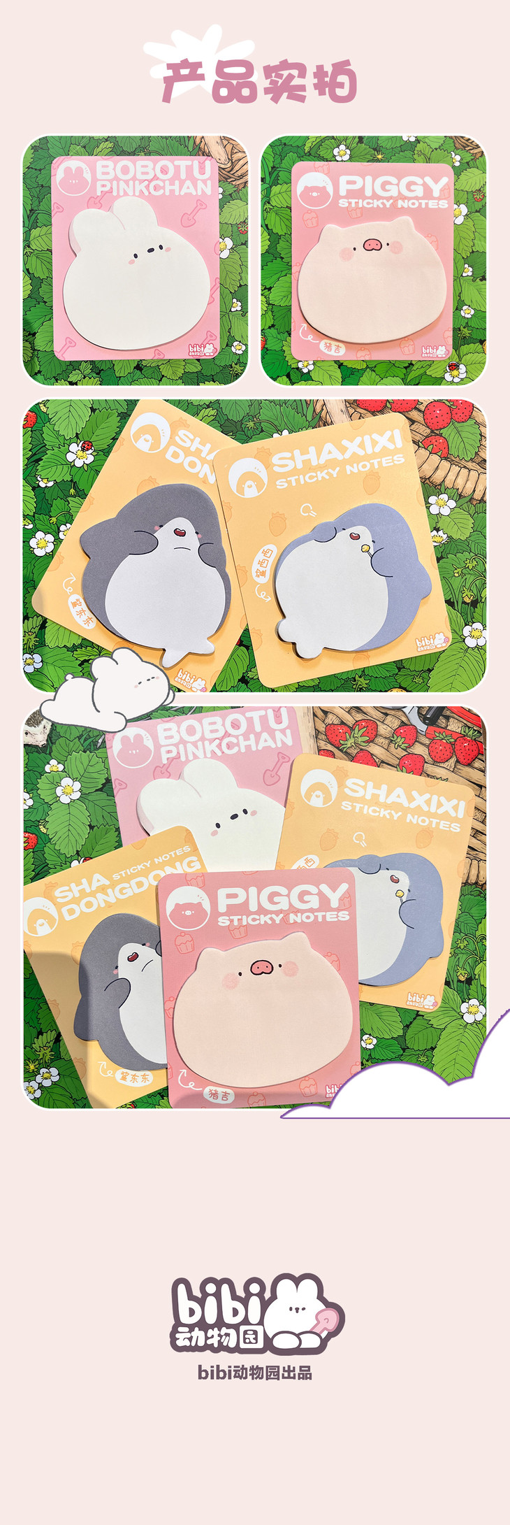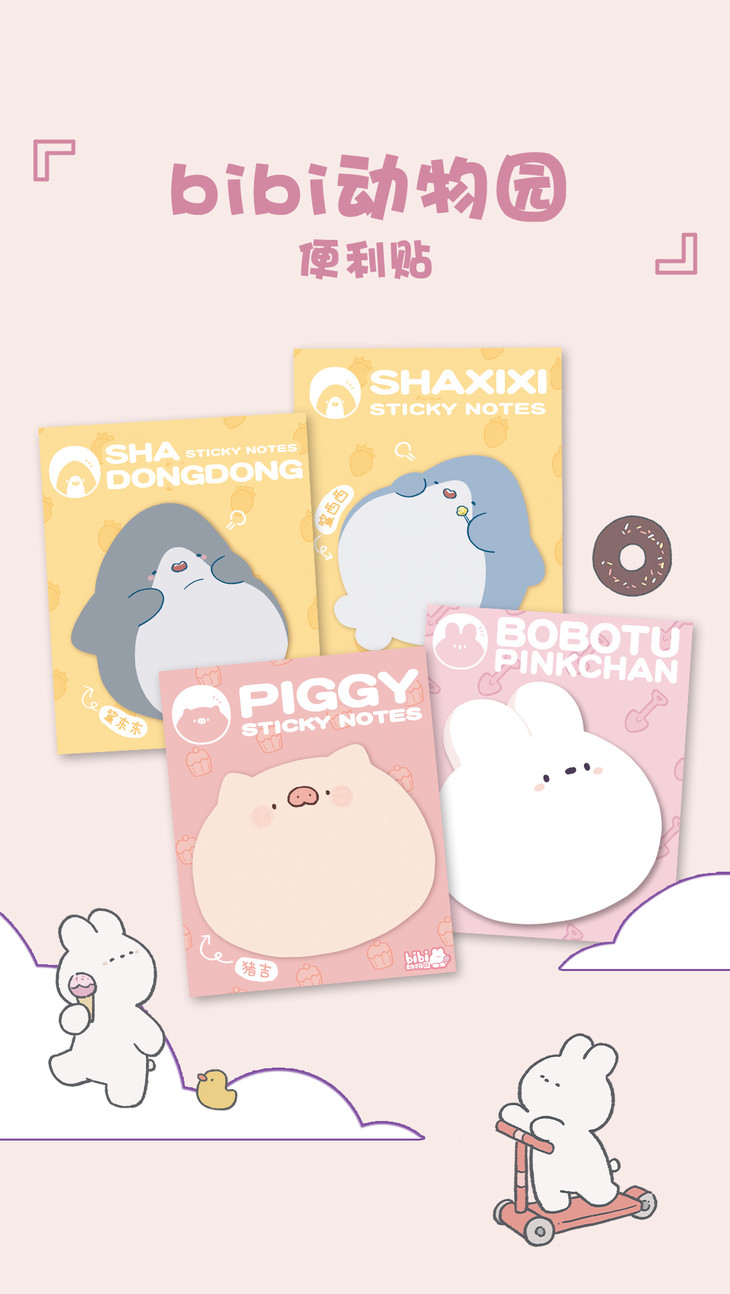 bibi动物园便利贴 卜卜兔 猪吉 鲨东东 鲨西西