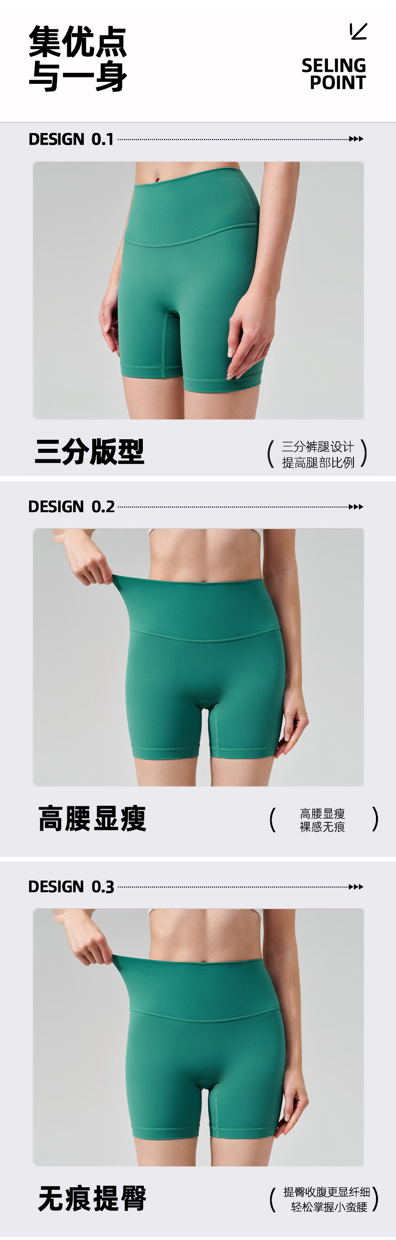 跃牌【轻匀系列】裸感夏季无T瑜伽裤女高腰收腹健身短裤7003