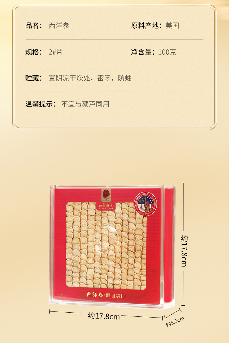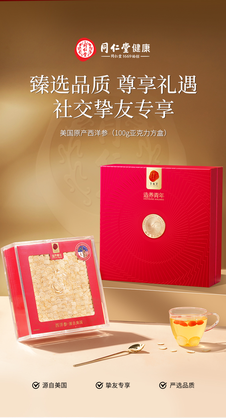 【正宗同仁堂品牌】北京同仁堂 美国西洋参切片礼盒2#片/100克进口花旗参片西洋参含片可磨粉泡水泡酒滋补送父母SY