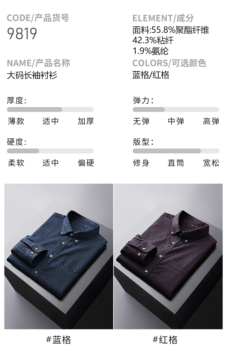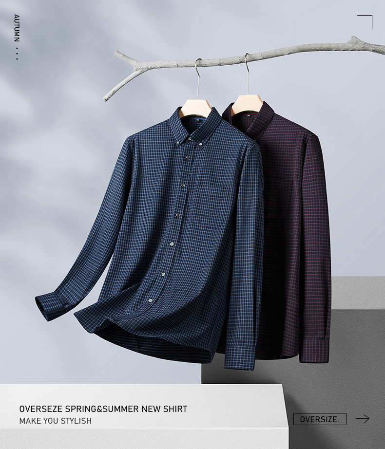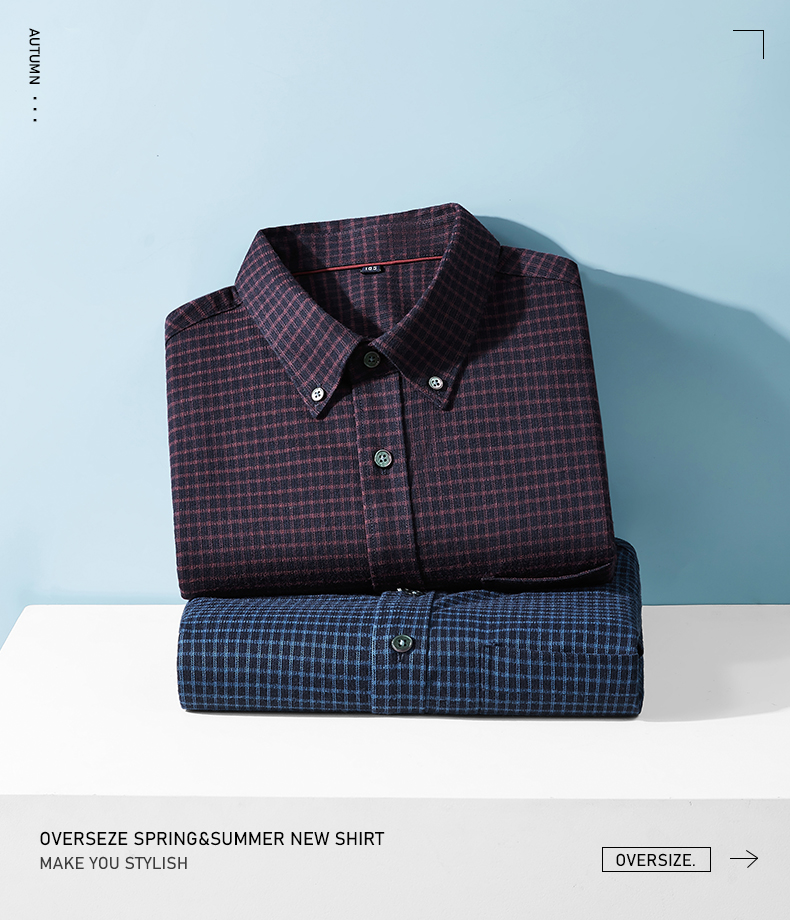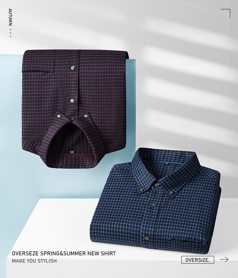 【新款DM】大依优型大码磨毛格子长袖衬衫男宽松加肥加大码男士休闲商务衬衣上衣胖子