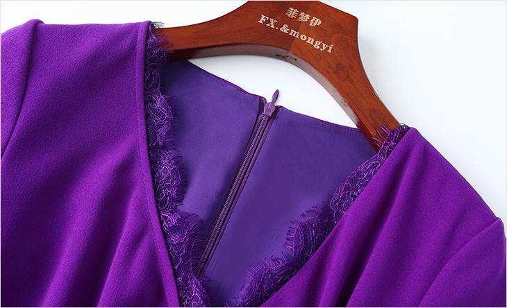 FMY-FX9CL22881新款V领蕾丝边法式收腰中长款包臀连衣裙TZW