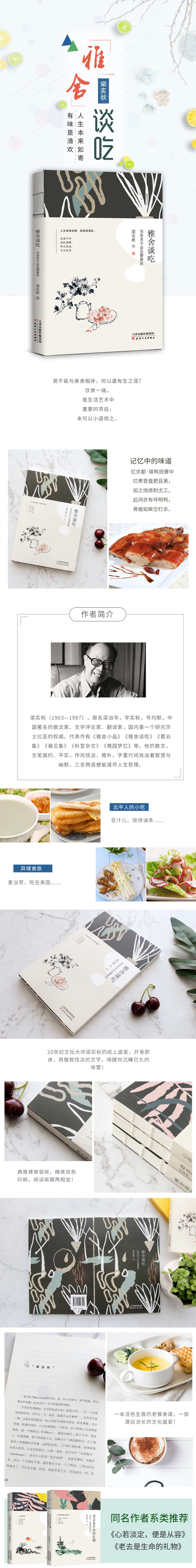 1. “梁实秋散文精选系列”是文坛大师梁实秋的散文集,包括《雅舍谈吃:美食者不必是饕餮客》《心若淡定,便是从容》《老去是生命的礼物:世间的一切遗憾都是成全》三本,精选了梁实秋谈美食、谈人生、谈往事的经典散文,全新校订,全新呈现!