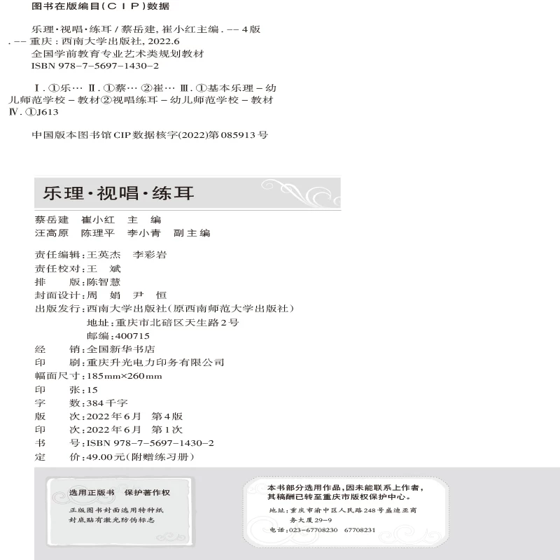 *书名:乐理·视唱·练耳 | *ISBN:978-7-5697-1430-2 |