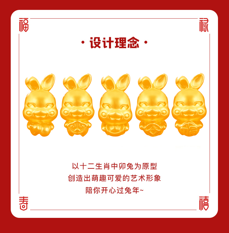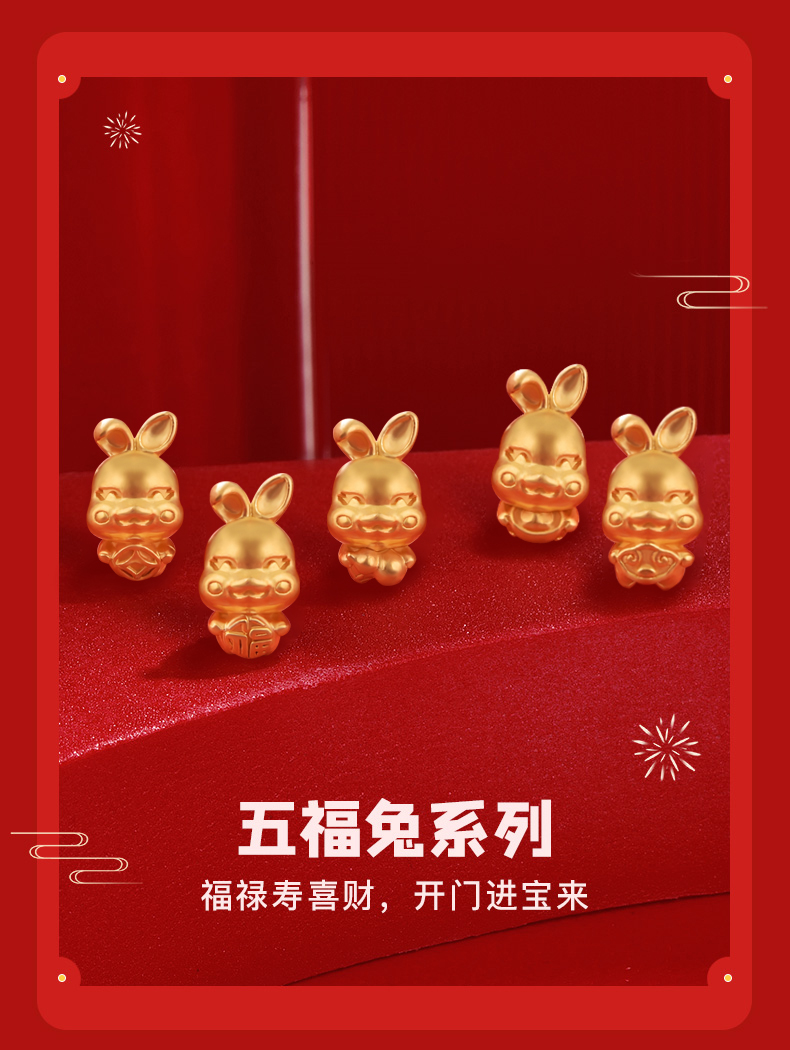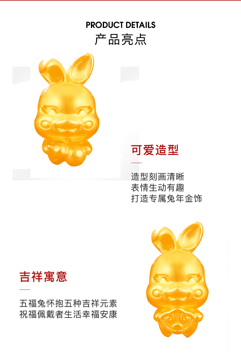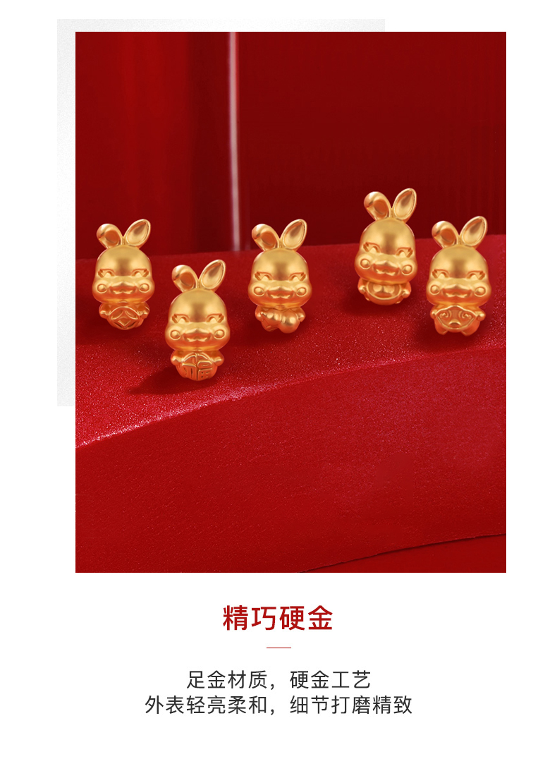 中国黄金珠宝 生肖兔足金玛瑙手串 新年黄金首饰礼物