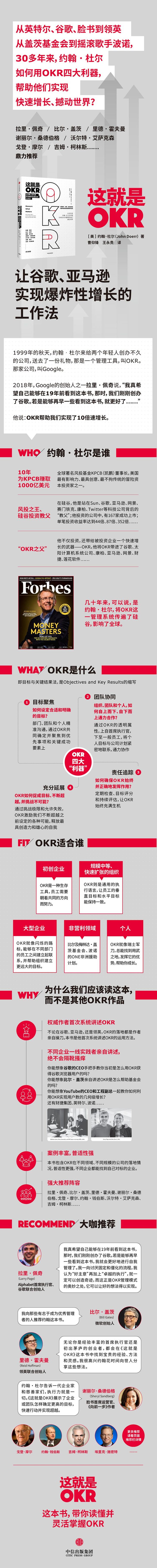 这就是OKR 让谷歌、亚马逊实现增长的工作法 OKR 的实际运用 “OKR”之父、硅谷传奇投资人约翰•杜尔 系统阐述OKR