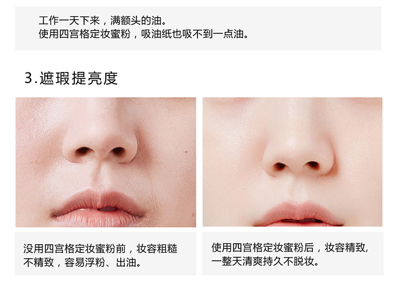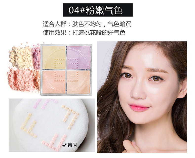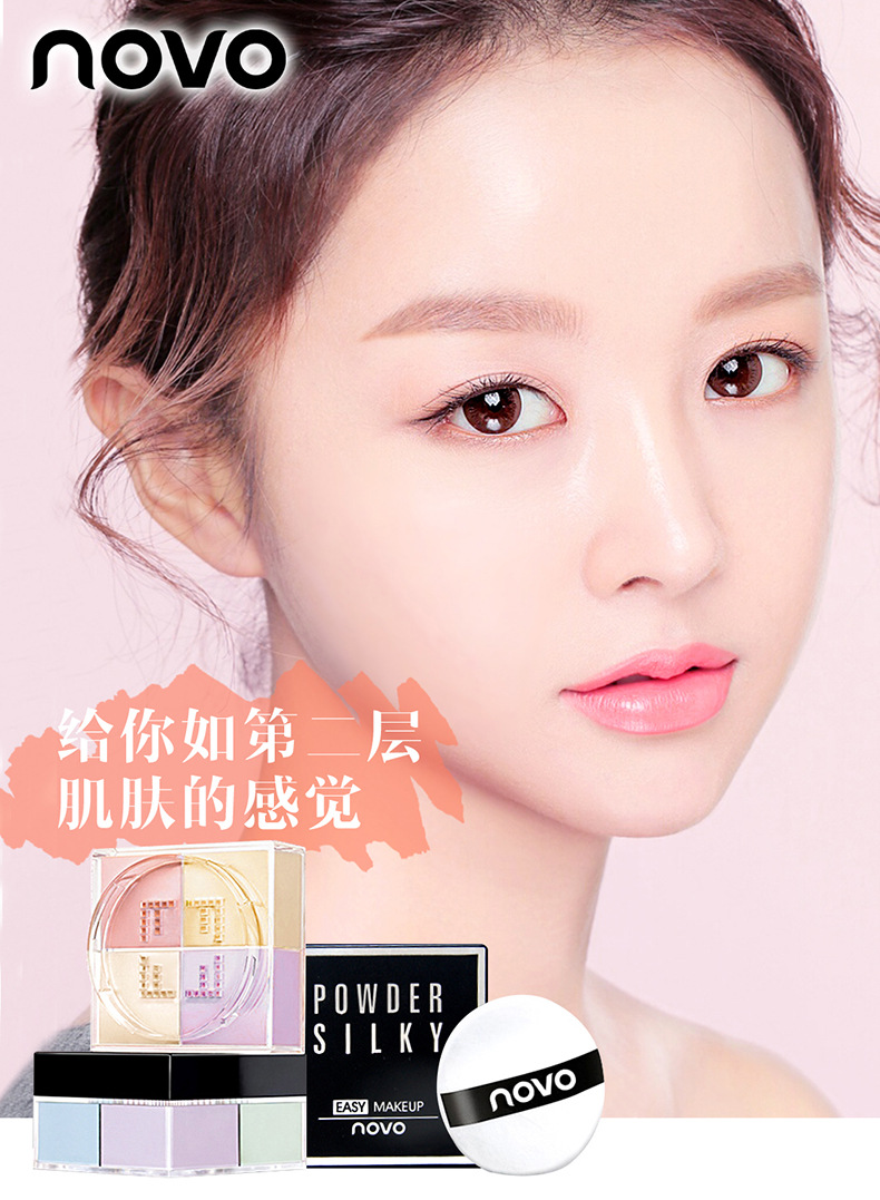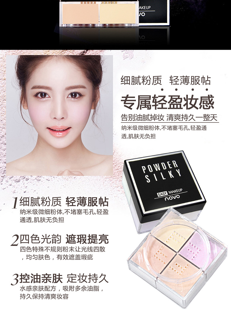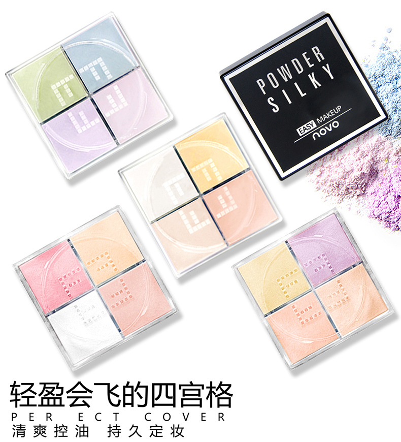 【磨皮吸油❗轻盈透薄】彩妆NOVO轻盈无痕四宫格散粉 定妆粉控油持久防水不卡粉定妆蜜粉。xa