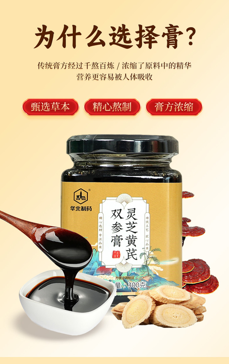 严选 | 华北制药茯湿膏+灵芝黄芪双参膏 300g/瓶