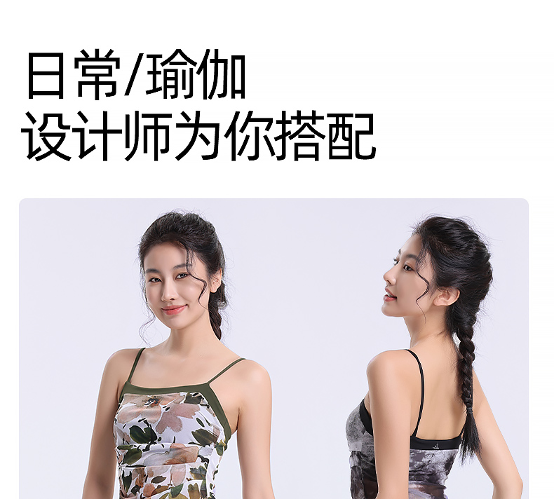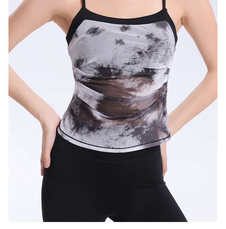 梵美人 F5177 瑜伽背心 有胸垫 印花网纱