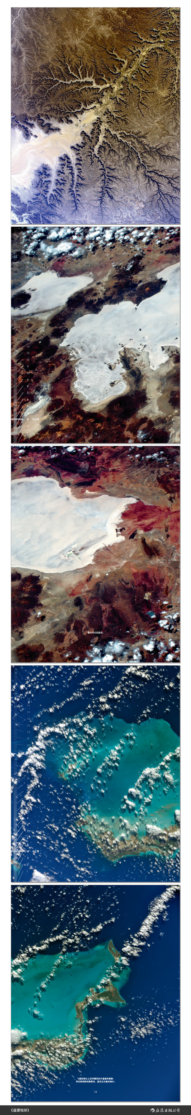 从上万幅图片中精选出150余幅,用200天的时间一点点揭开地球神秘的面纱。高山、海洋、森林、荒漠、岛屿、城市,无不幻化为一幅幅辉煌壮观的画卷。从无边无际的沙漠到人工耕种的农田,从蔚蓝大海上的无名岛屿到华灯初上的繁华都市——那些变化无穷的地形,那些神秘莫测的色彩,都曾是只有上帝才能看到的景色。