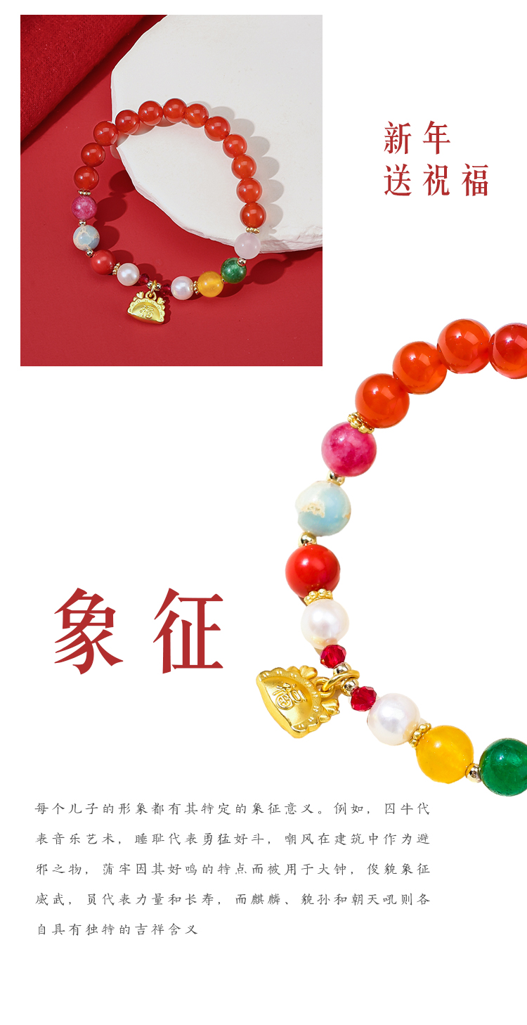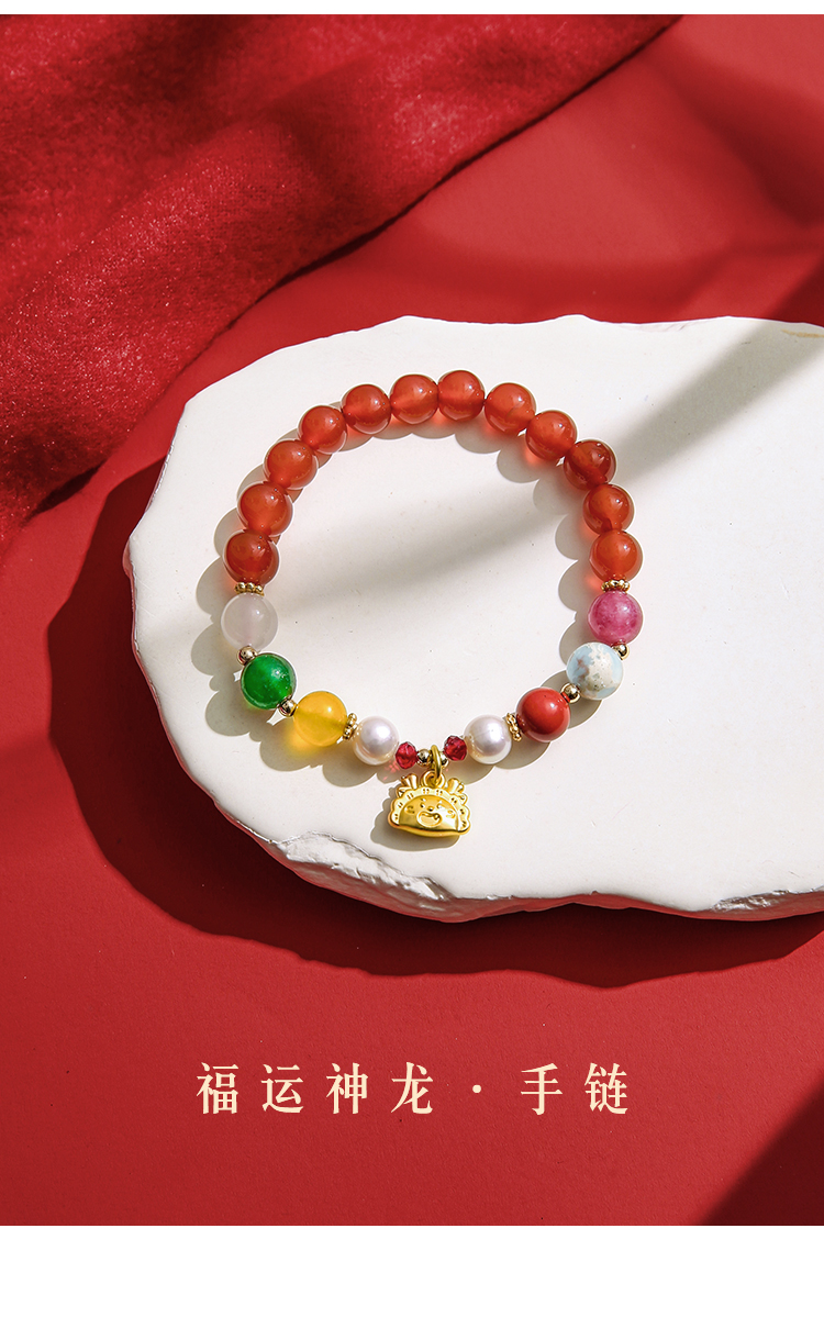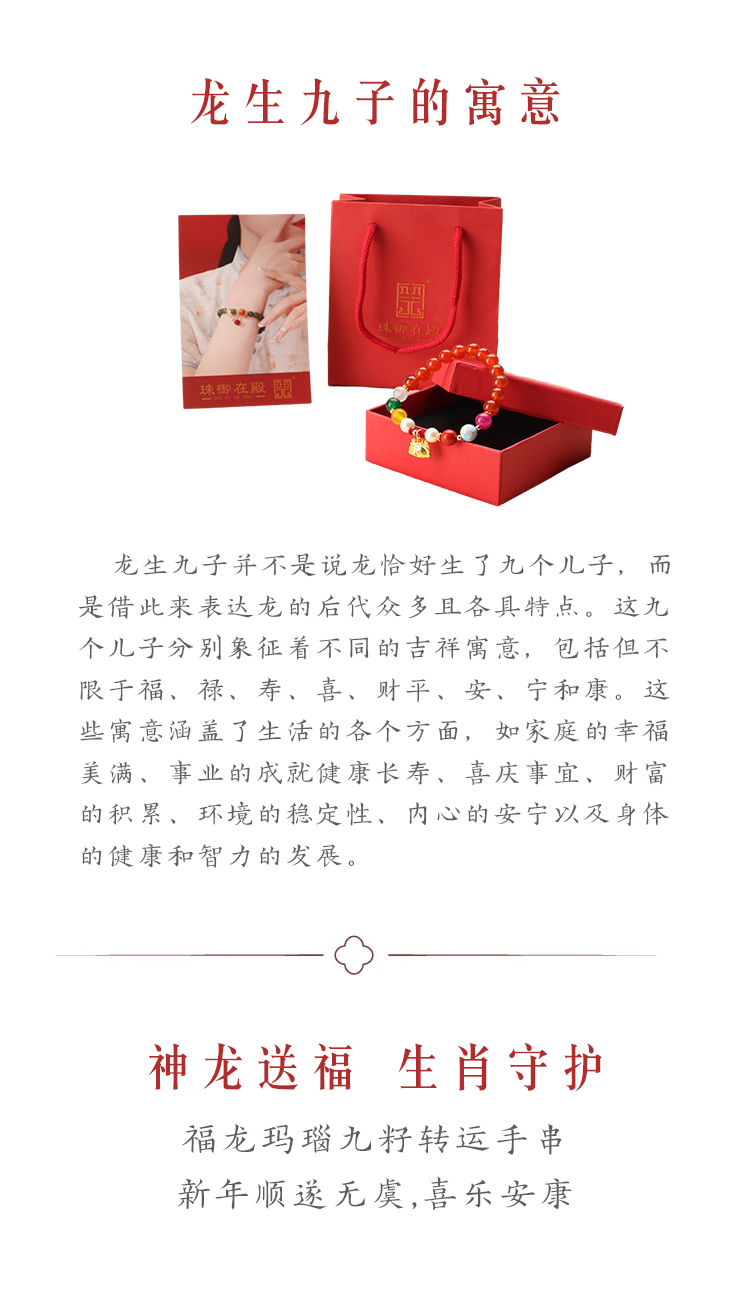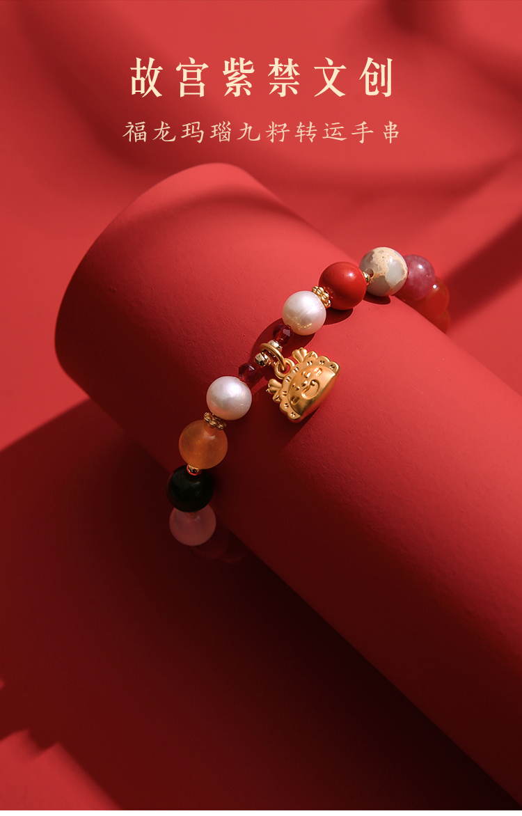 故宫·紫禁文创 珠御在殿龙年福龙玛瑙九籽转运手串 新年礼盒装 玛瑙珍珠朱砂饺子龙等九种串珠