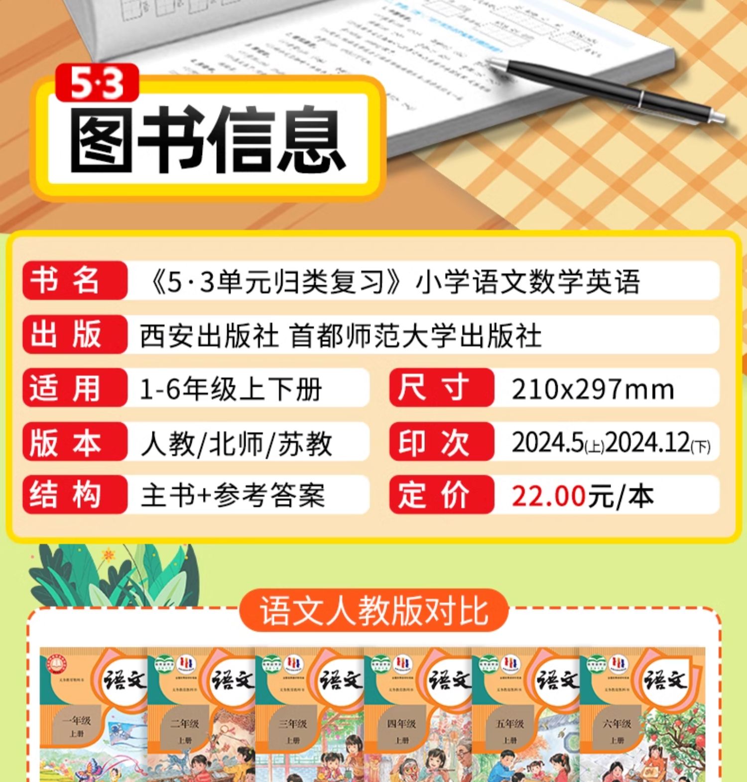 【特价】2025春53单元归类复习练习版综合复习语文数学英语123456下册年级任选