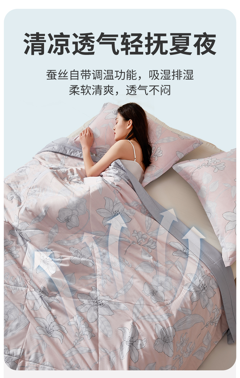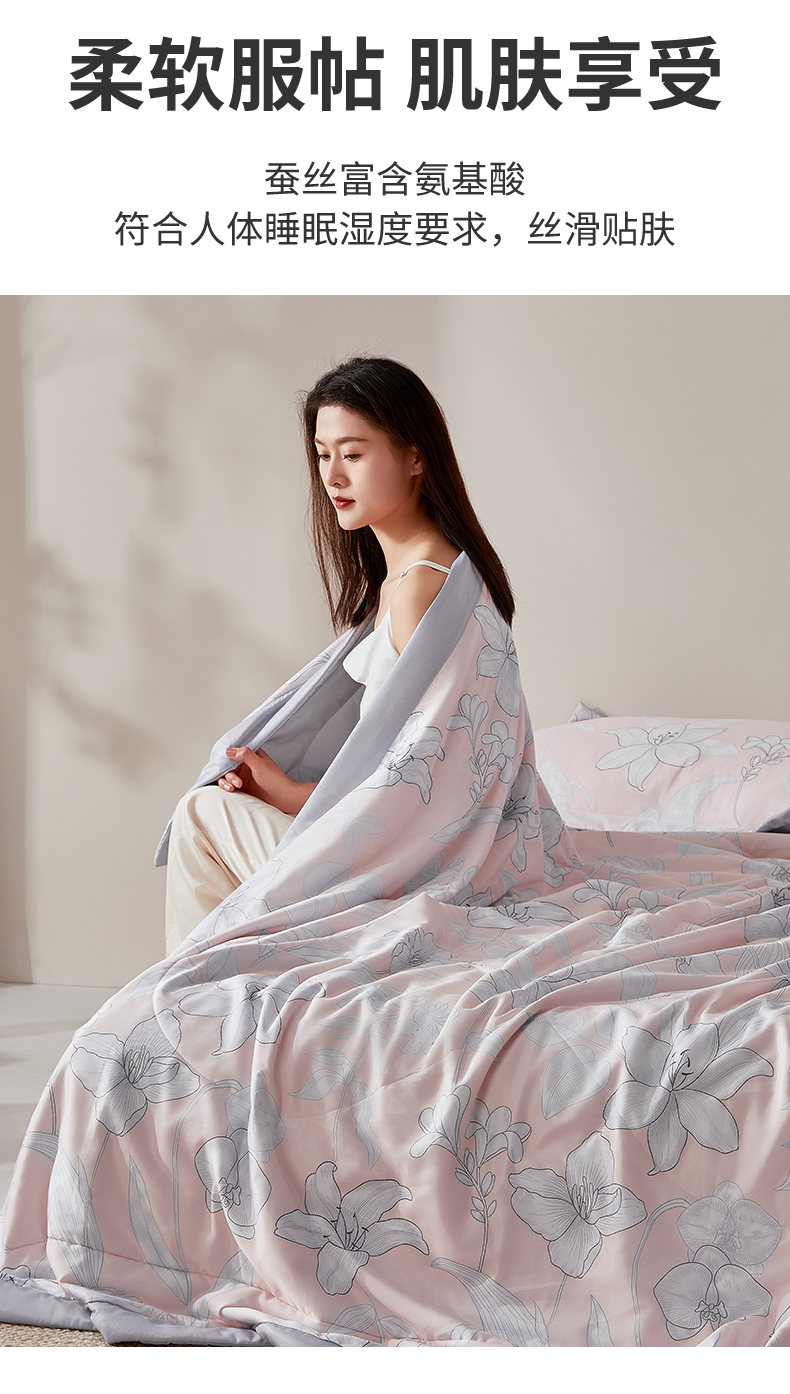 一默印花蚕丝夏被(樱粉-百合)/1件(150*200cm,总重约800g)补单专用