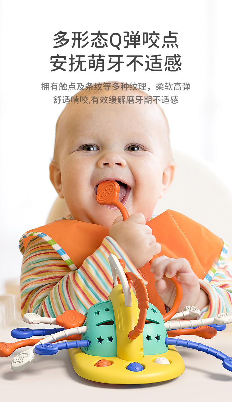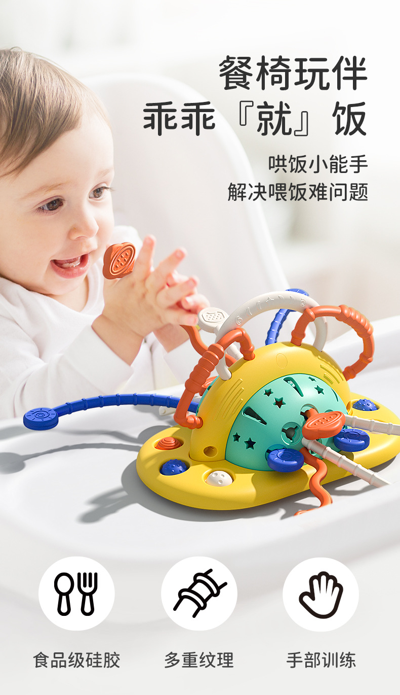 【餐椅玩伴!哄饭小能手】婴儿玩具抽抽乐,手部精细动作训练,硅胶餐盘拉拉乐益智早教宝宝0一1岁li