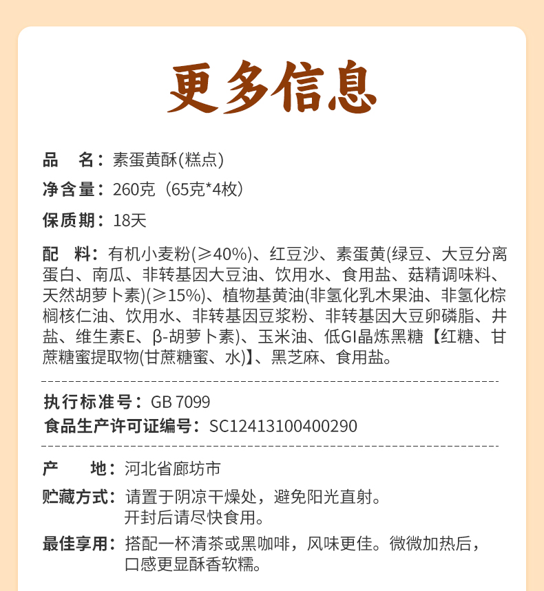 素蛋黄酥 | 65g*4枚/盒 有机小麦粉 酥香沙润 不含蛋奶 0胆固醇 下午茶糕点 小呆鸟【本单品包邮同享小呆鸟系列满98包邮】