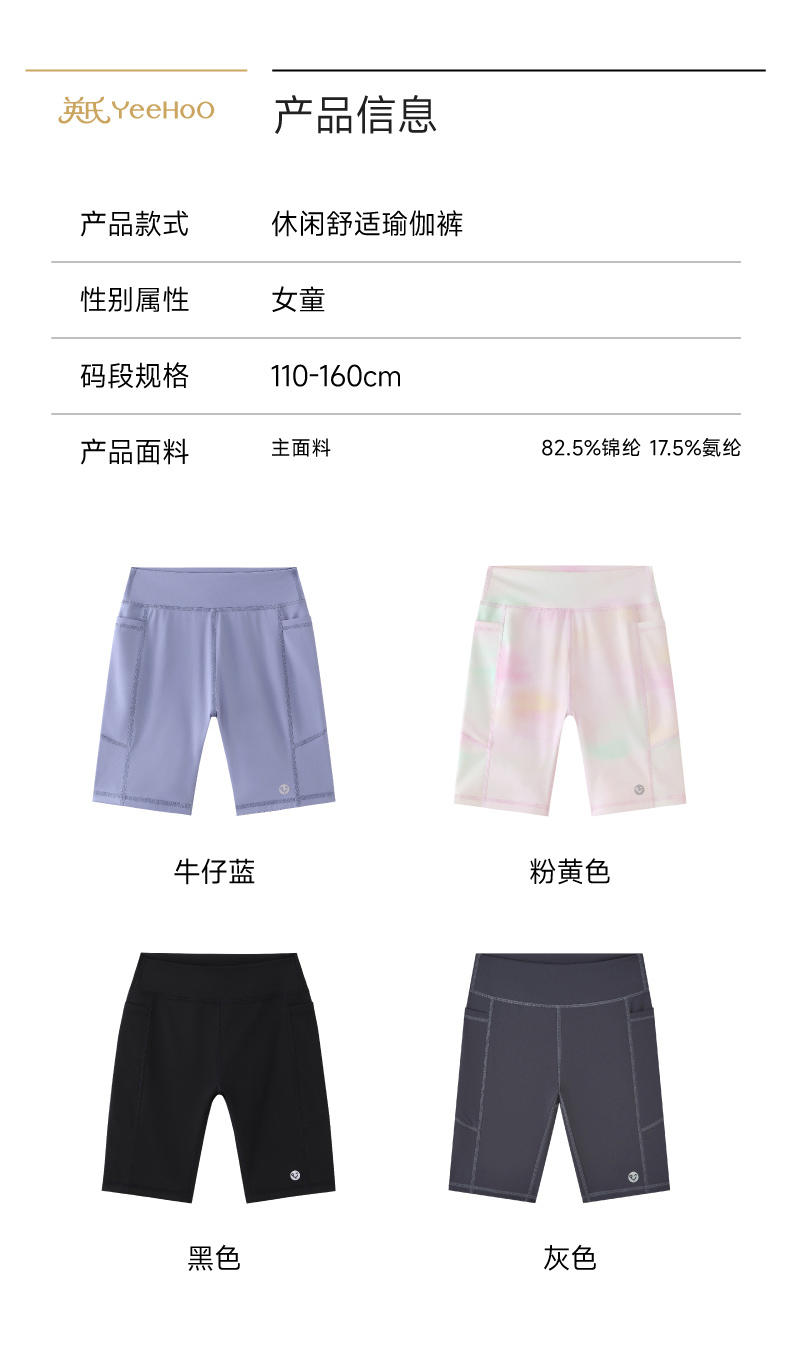【耐磨抗造】英氏儿童裤子春夏款女童中裤2026新款瑜伽紧身裤夏季百搭舒适中裤