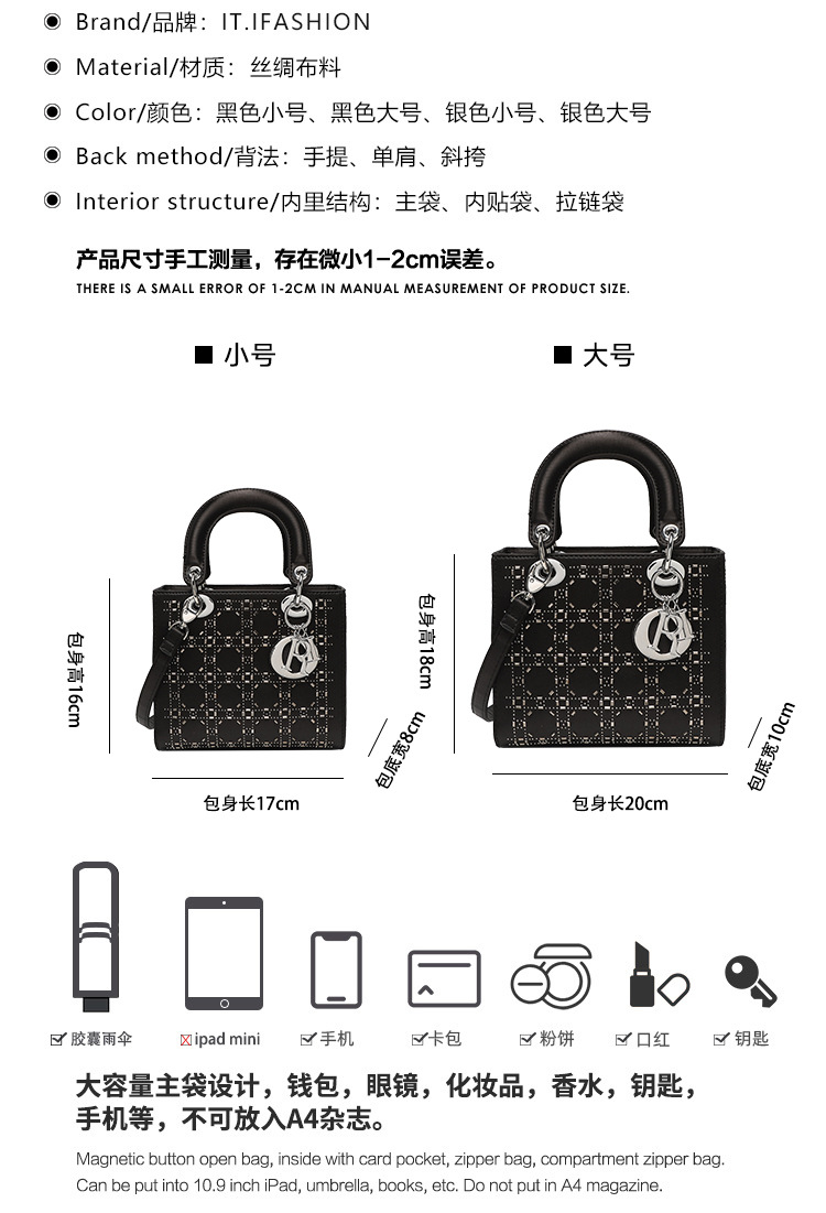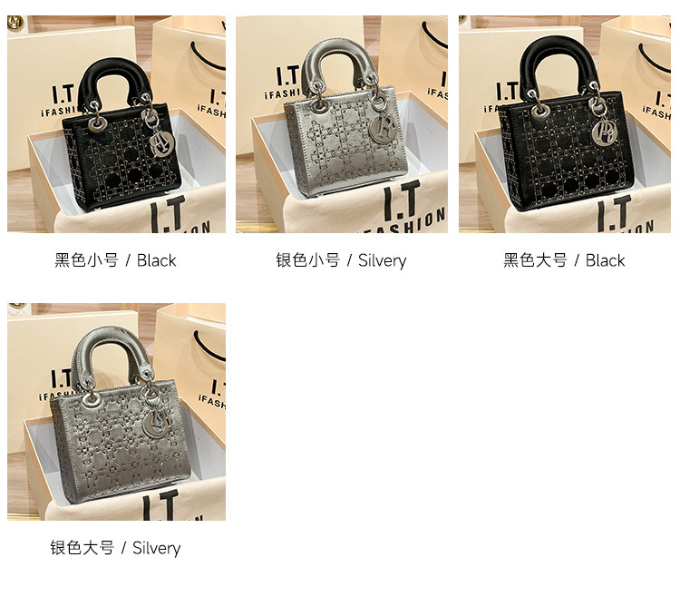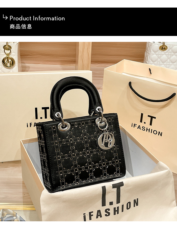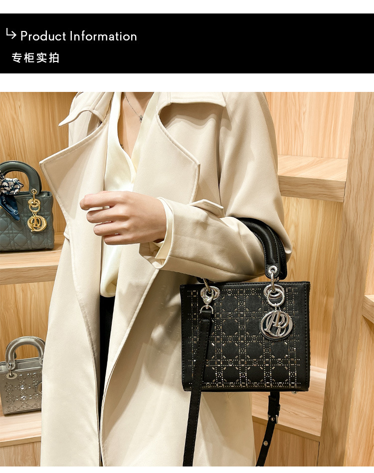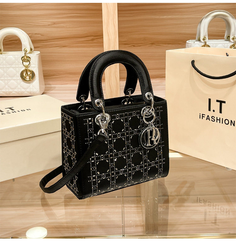 丁摩 【高品质】戴妃包女新款欧美时尚大牌烫钻重工高级感女士手提斜挎小包包5ZF-22402