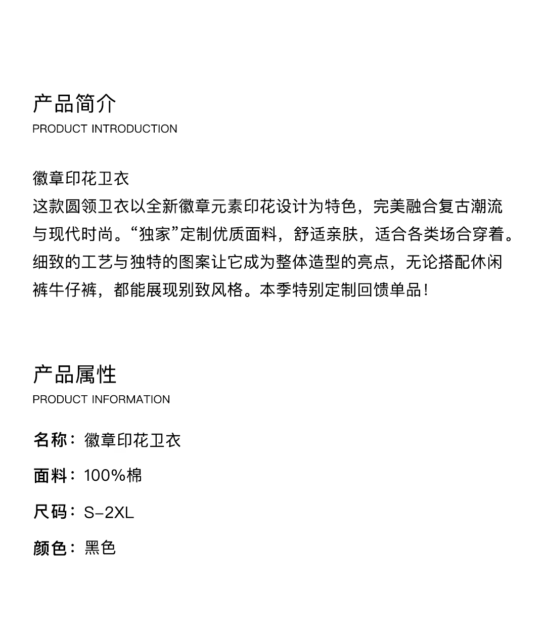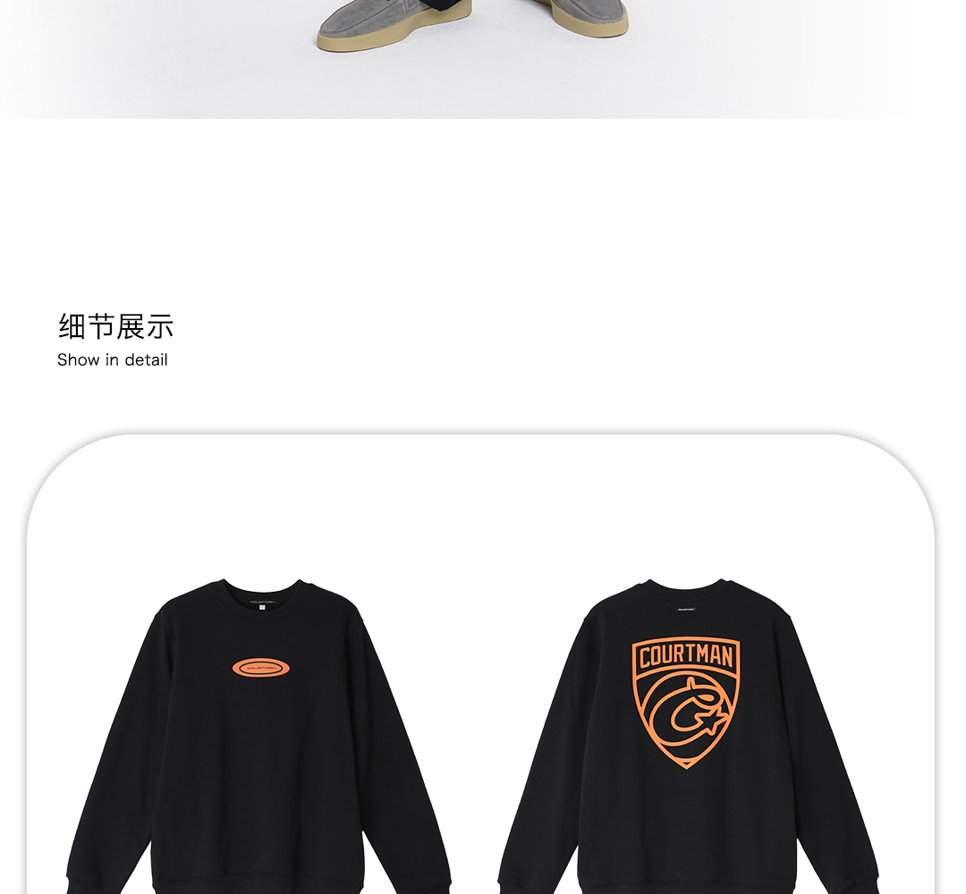 COURTMAN圆领卫衣2023秋冬印花美式小众设计男秋季休闲情侣女外套