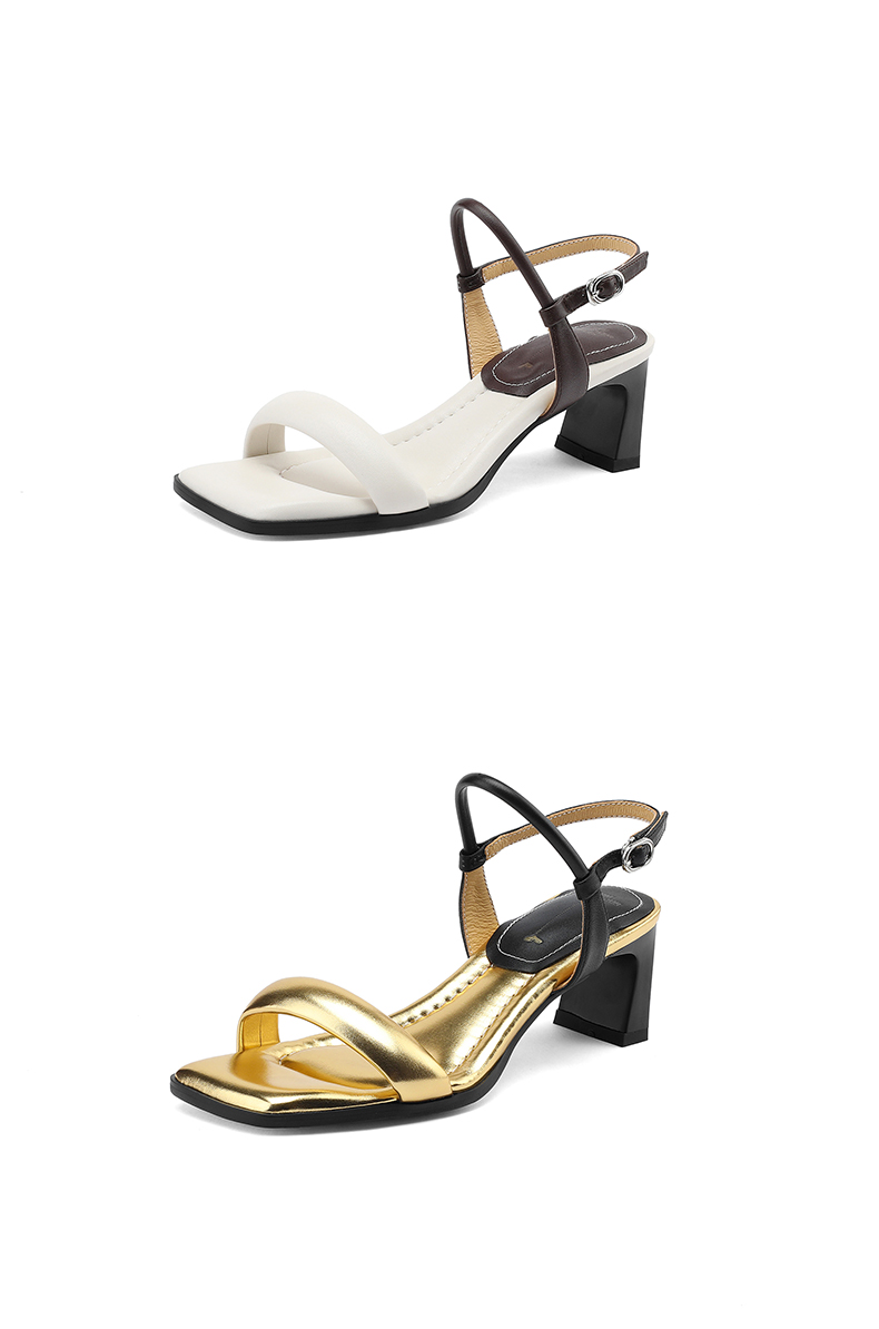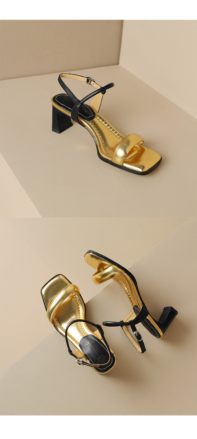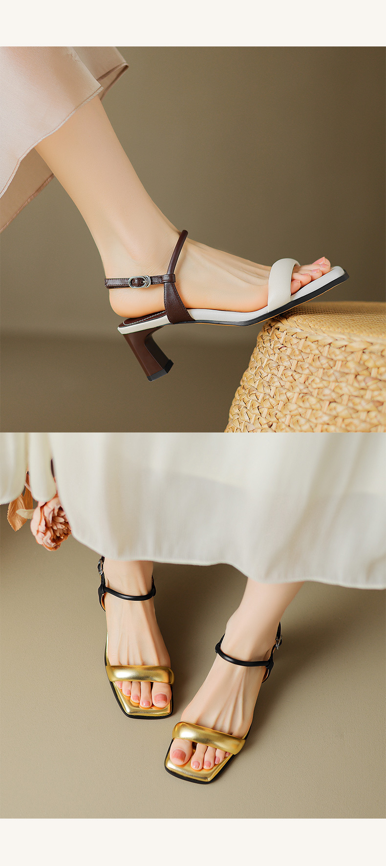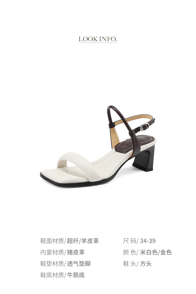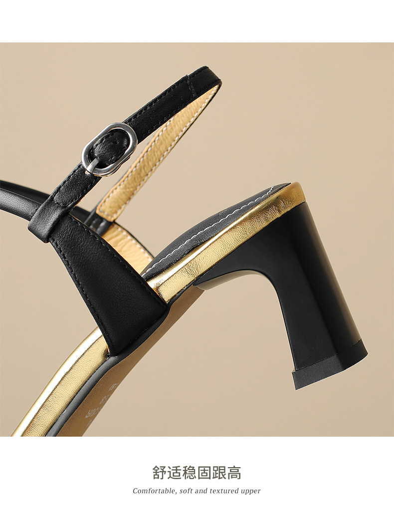 时尚新款,真皮撞色平头高跟凉鞋HCY-3580