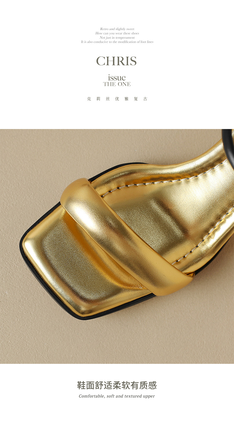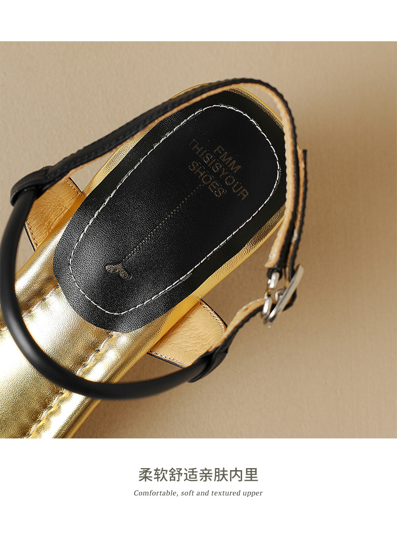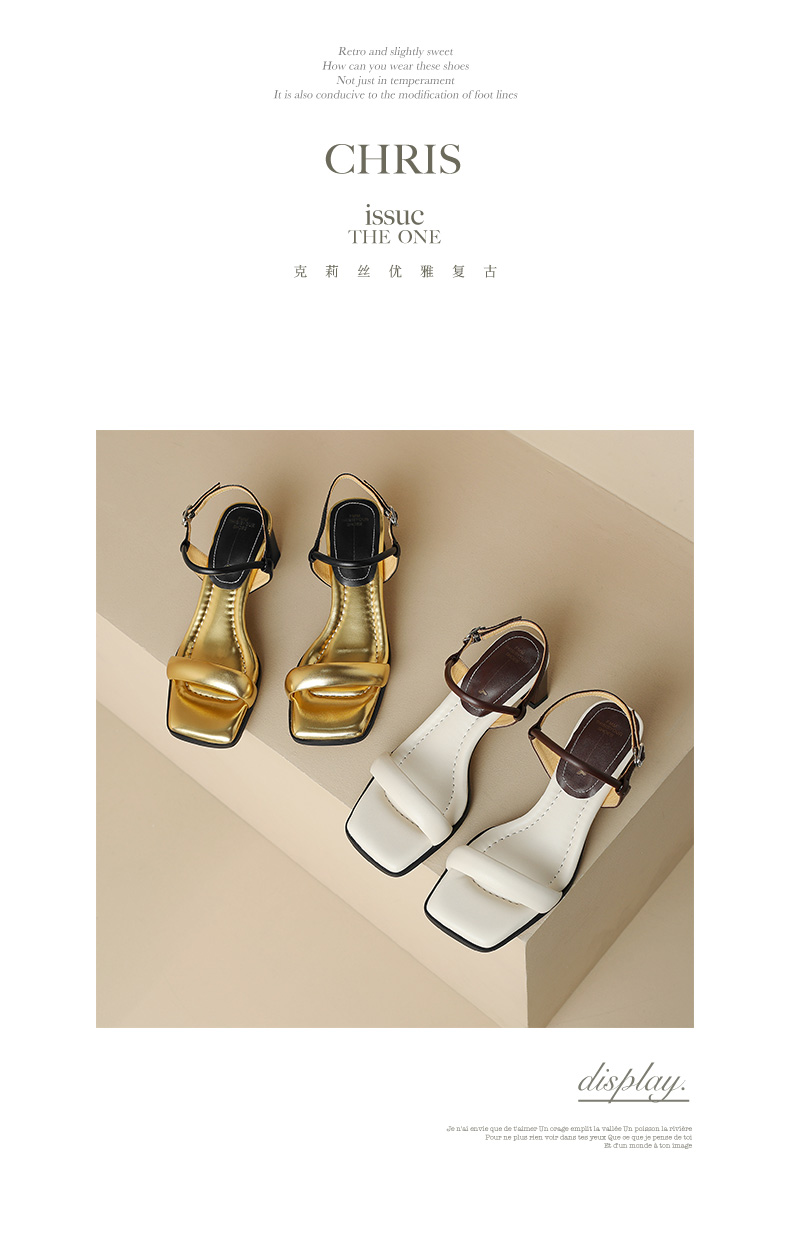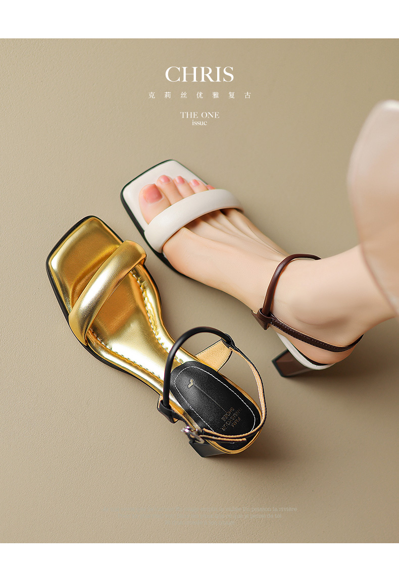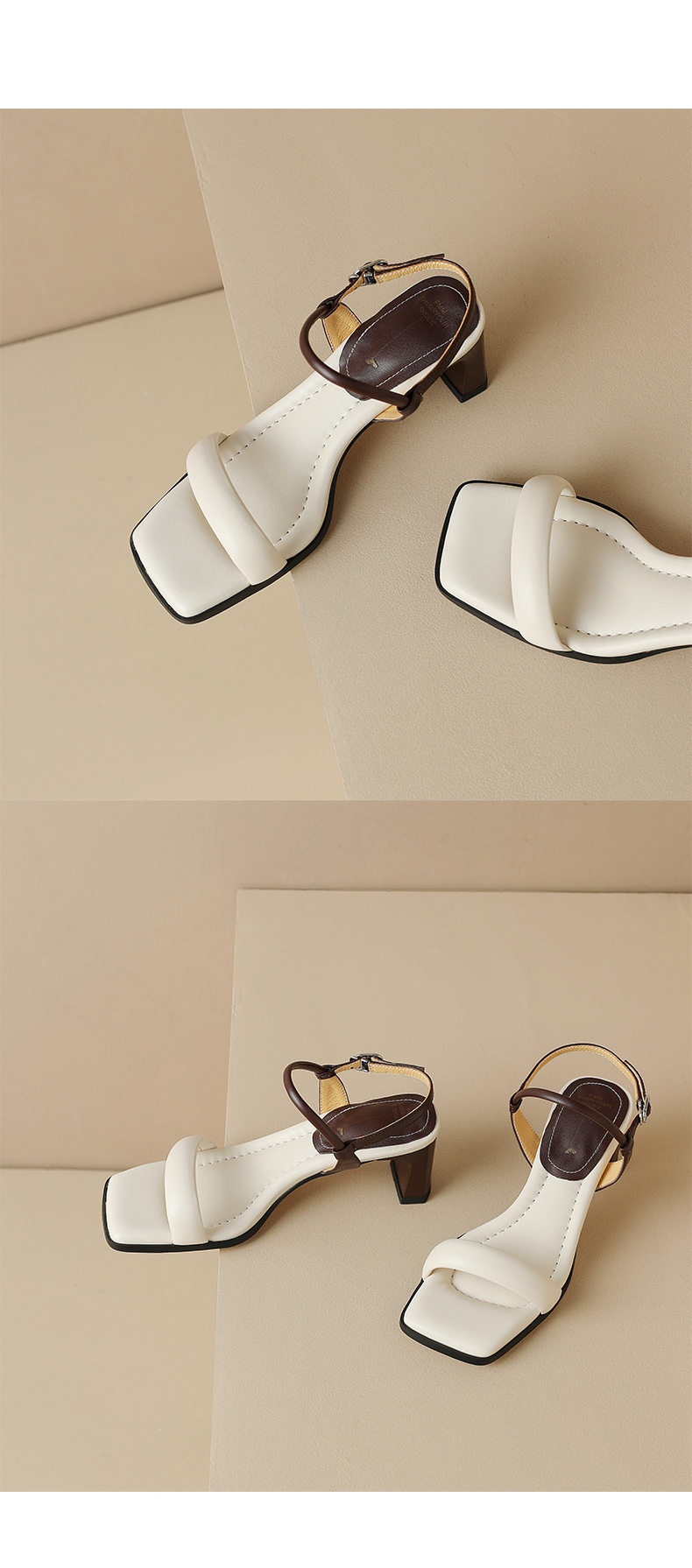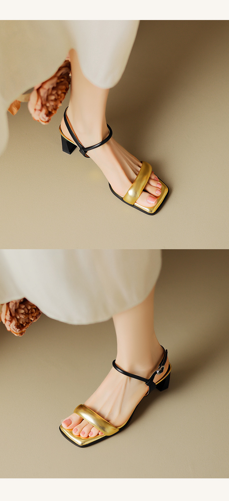 时尚新款,真皮撞色平头高跟凉鞋HCY-3580