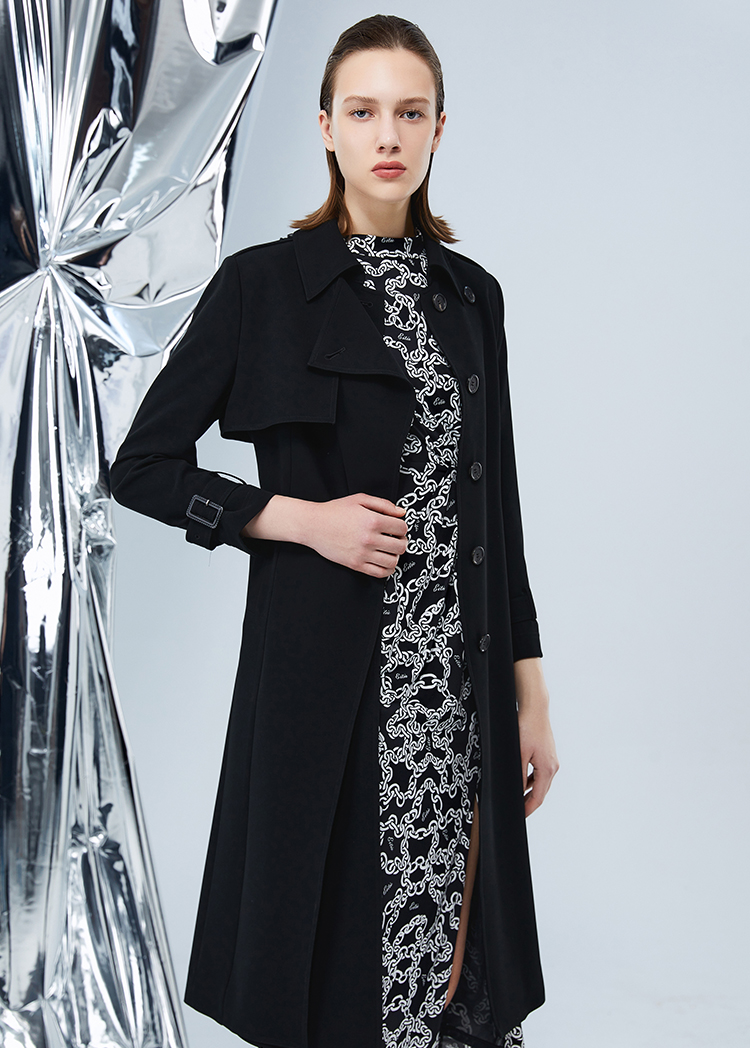EITIE爱特爱秋季新款酷感经典通勤长款风衣外套7504210