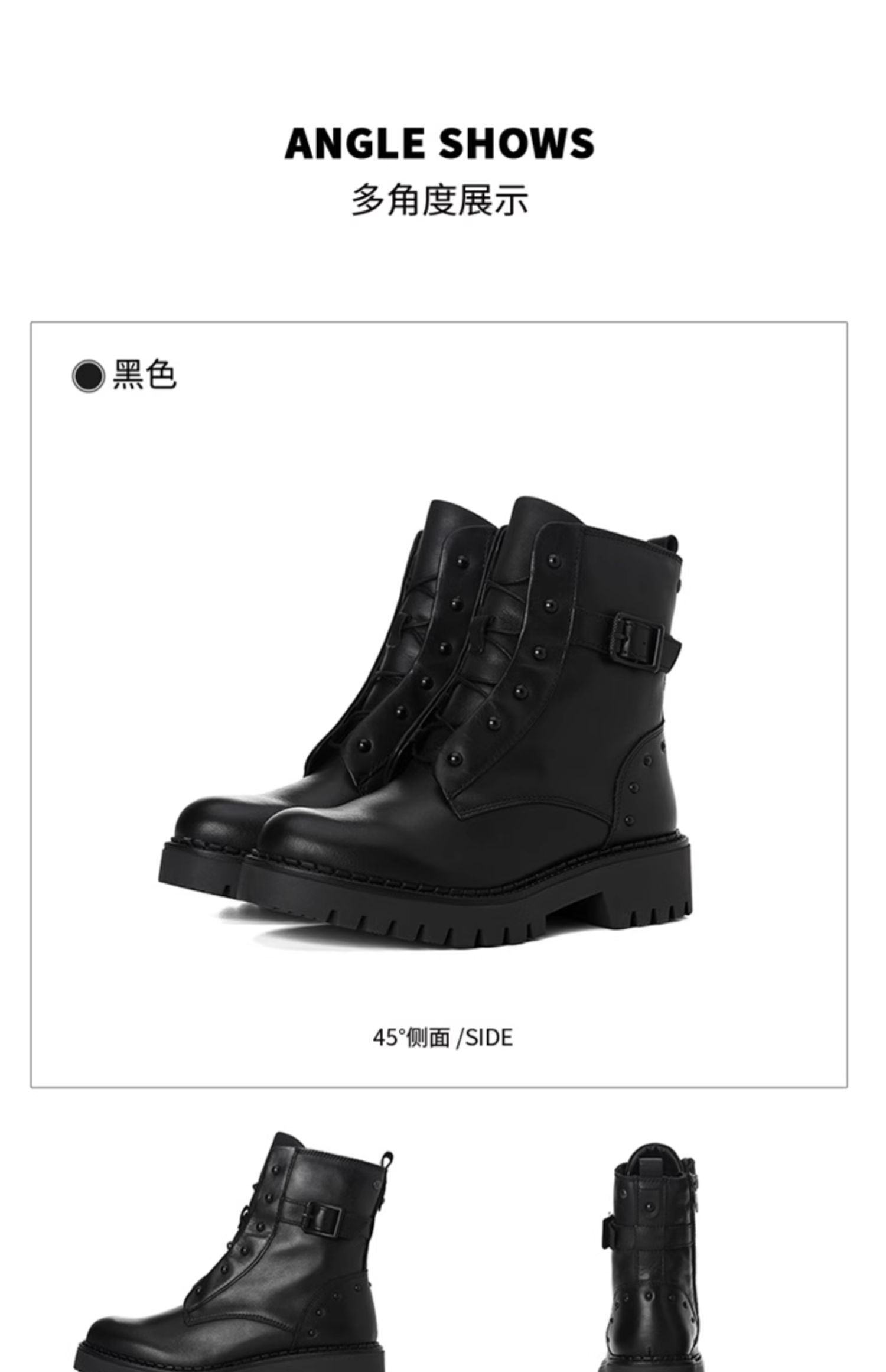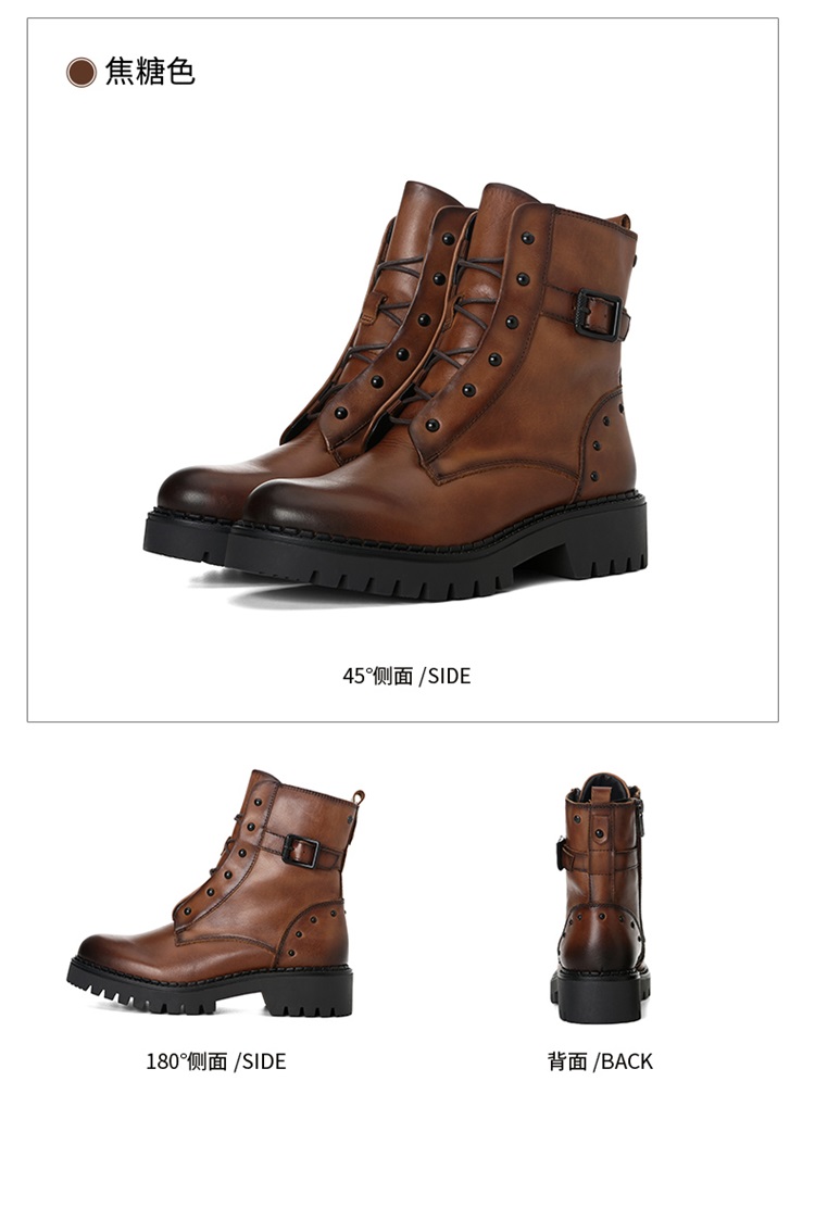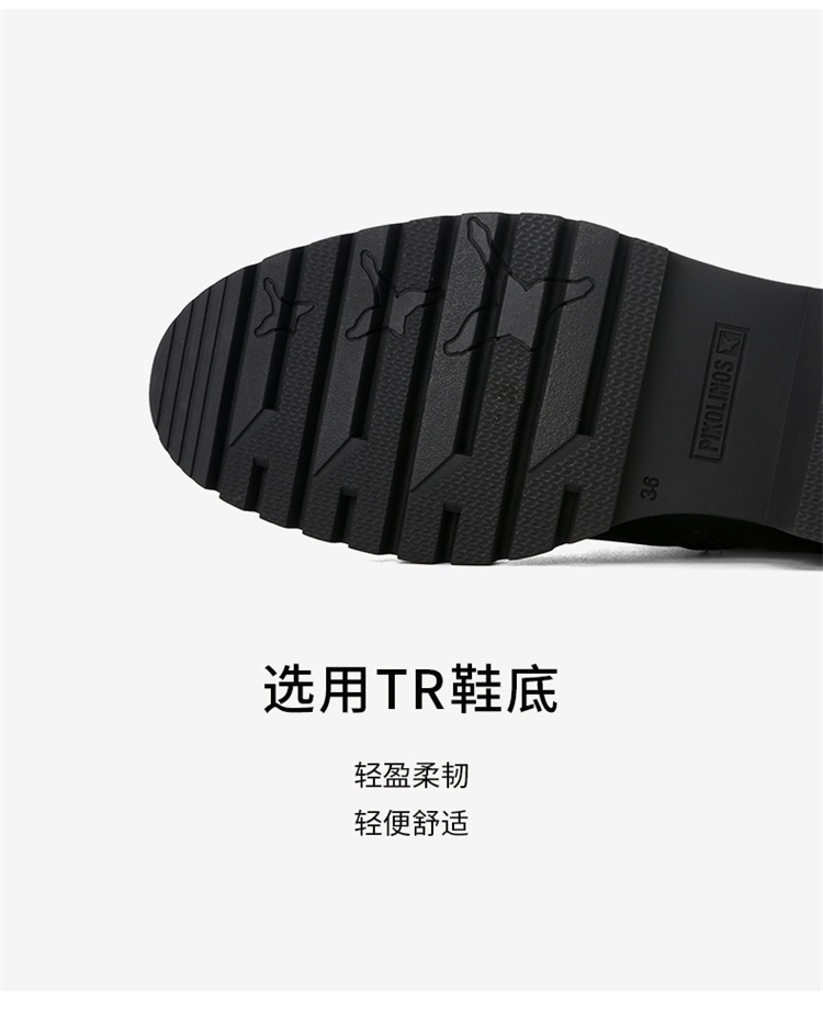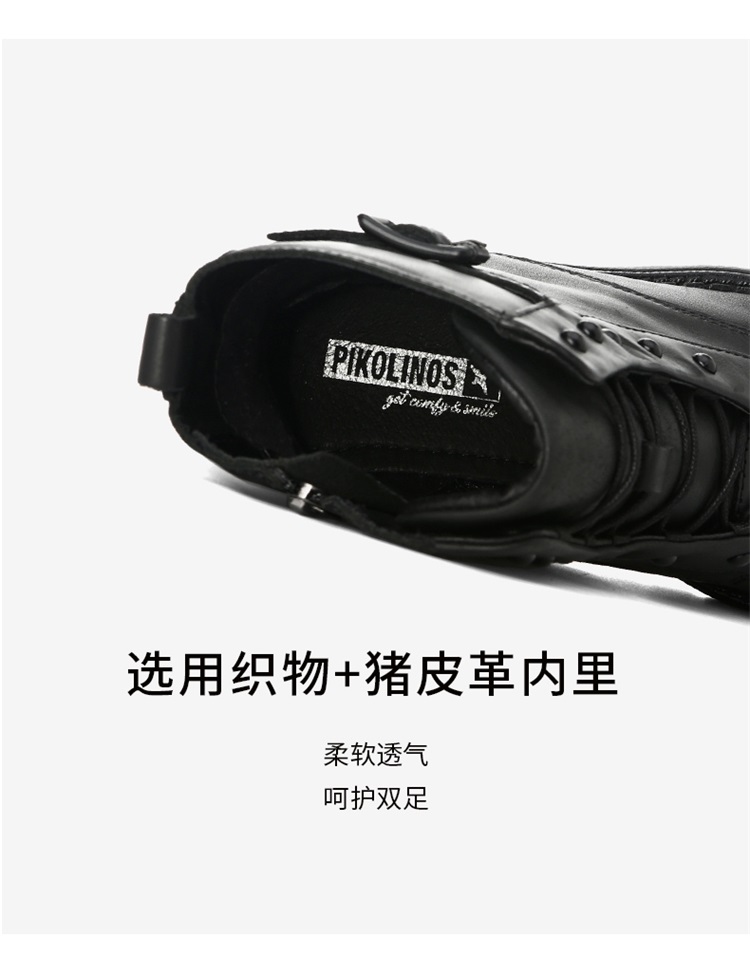 Pikolinos派高雁23冬季牛皮圆头粗跟系带英伦马丁靴