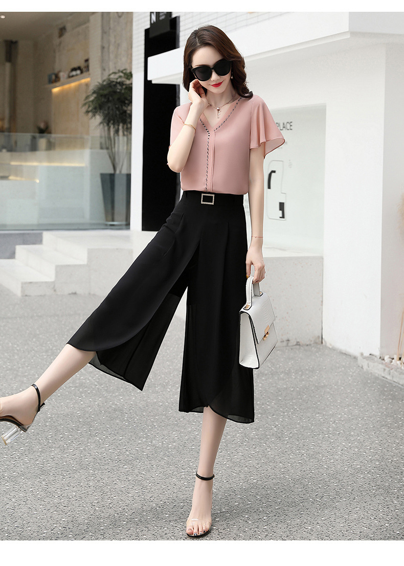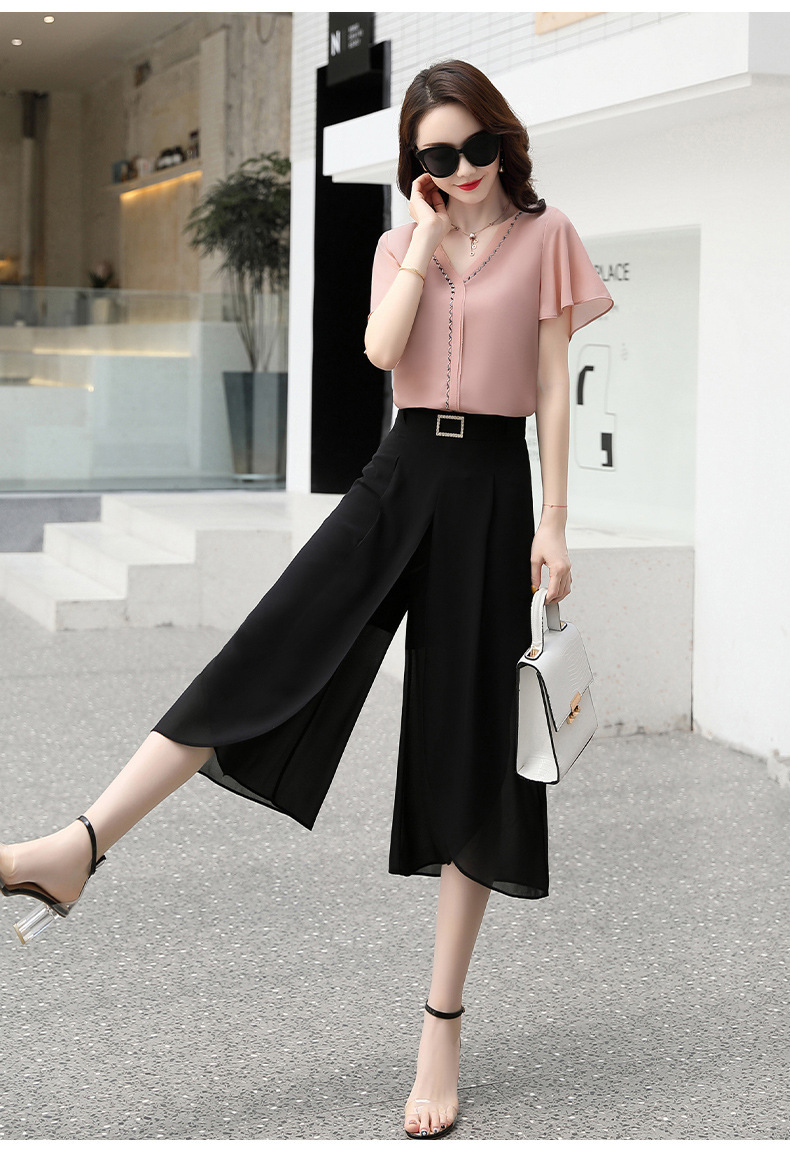 YNQJ-9045洋气减龄轻熟时尚气质显瘦小香风职业阔腿裤两件套