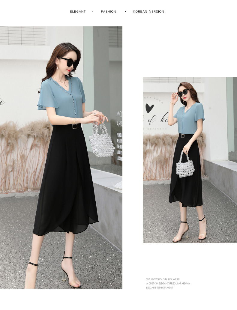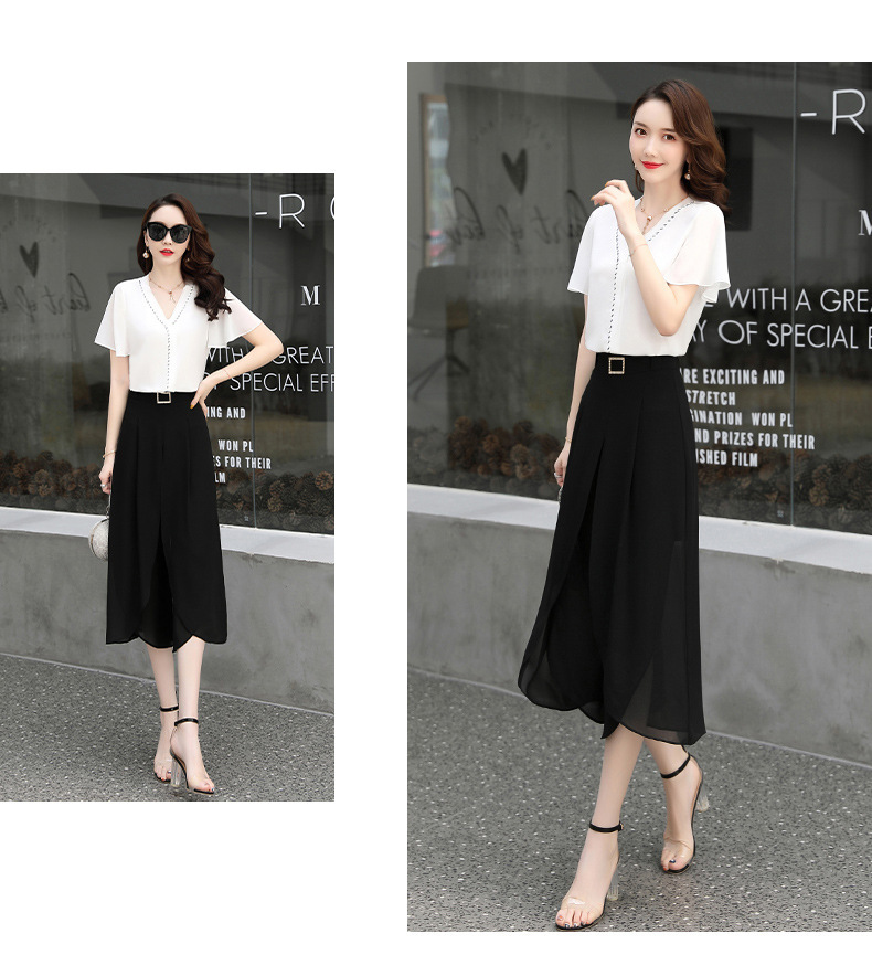 PDD-2020年新款时尚减龄修身显瘦短袖黑白色两件套YY