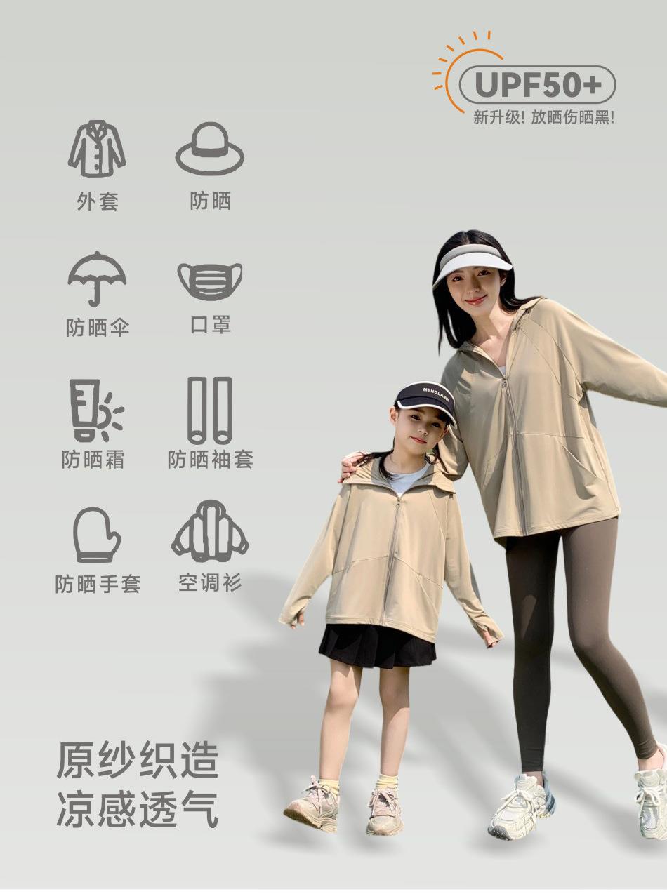 【秒杀】海诺尚品亲子款夏季新款防晒衣防紫外线女款防晒服轻薄透气冰丝外穿防晒服S-2xl