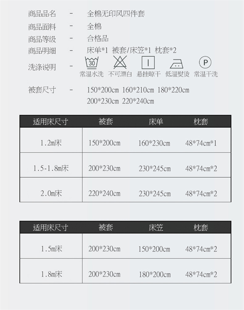 【惠慈家居】 全棉无印风四件套(被套200*230cm /床单230*245cm/枕套48*74cm*2)