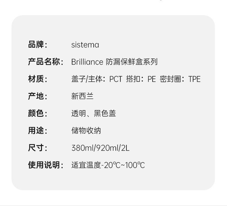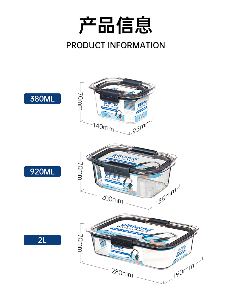 Brilliance 小号防漏矩形保鲜盒(380ml)