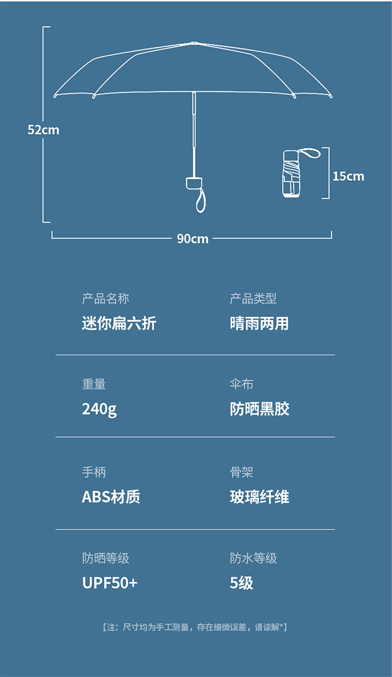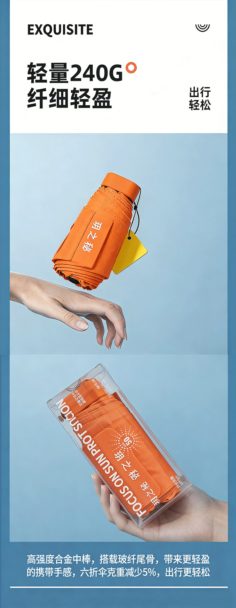 【品名】玥之秘 MINI卡片晴雨伞 轻量便携抗风 4色可选 【规格】 火焰橙、柠檬黄、梧桐米、天空蓝 【产地】国内 【发货包装】独立包装 【发货地】广州 【发货快递】中通、圆通、申通、韵达随机发 【不发货区域】新疆、西藏、海南、港澳台 【发货时效】48-72小时,周末节假日顺延 |