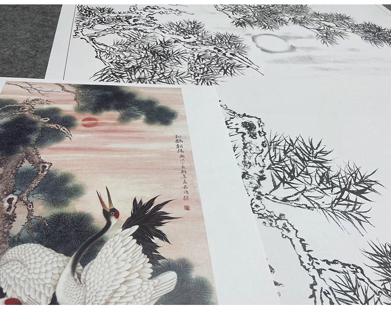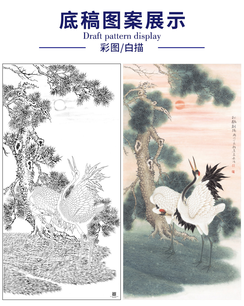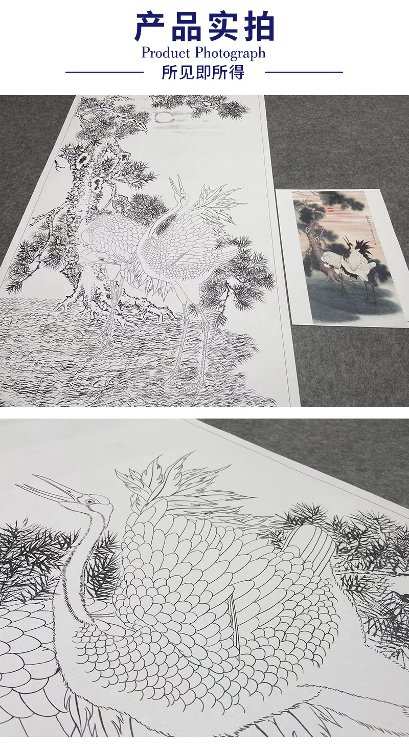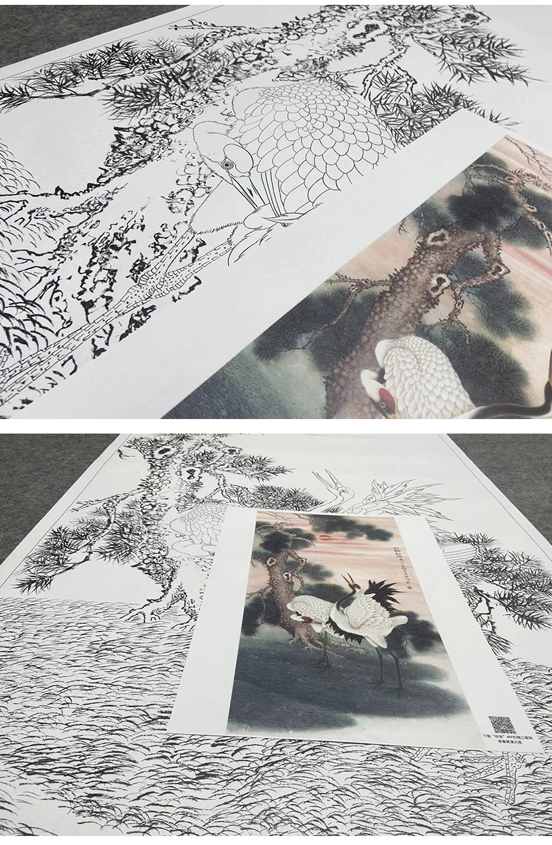 【大彩图】董希源工笔画白描底稿《松鹤朝阳》白鹤临摹勾线花鸟线稿HN06