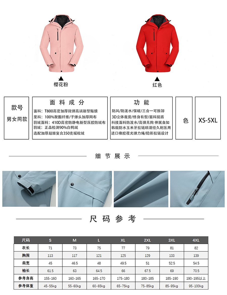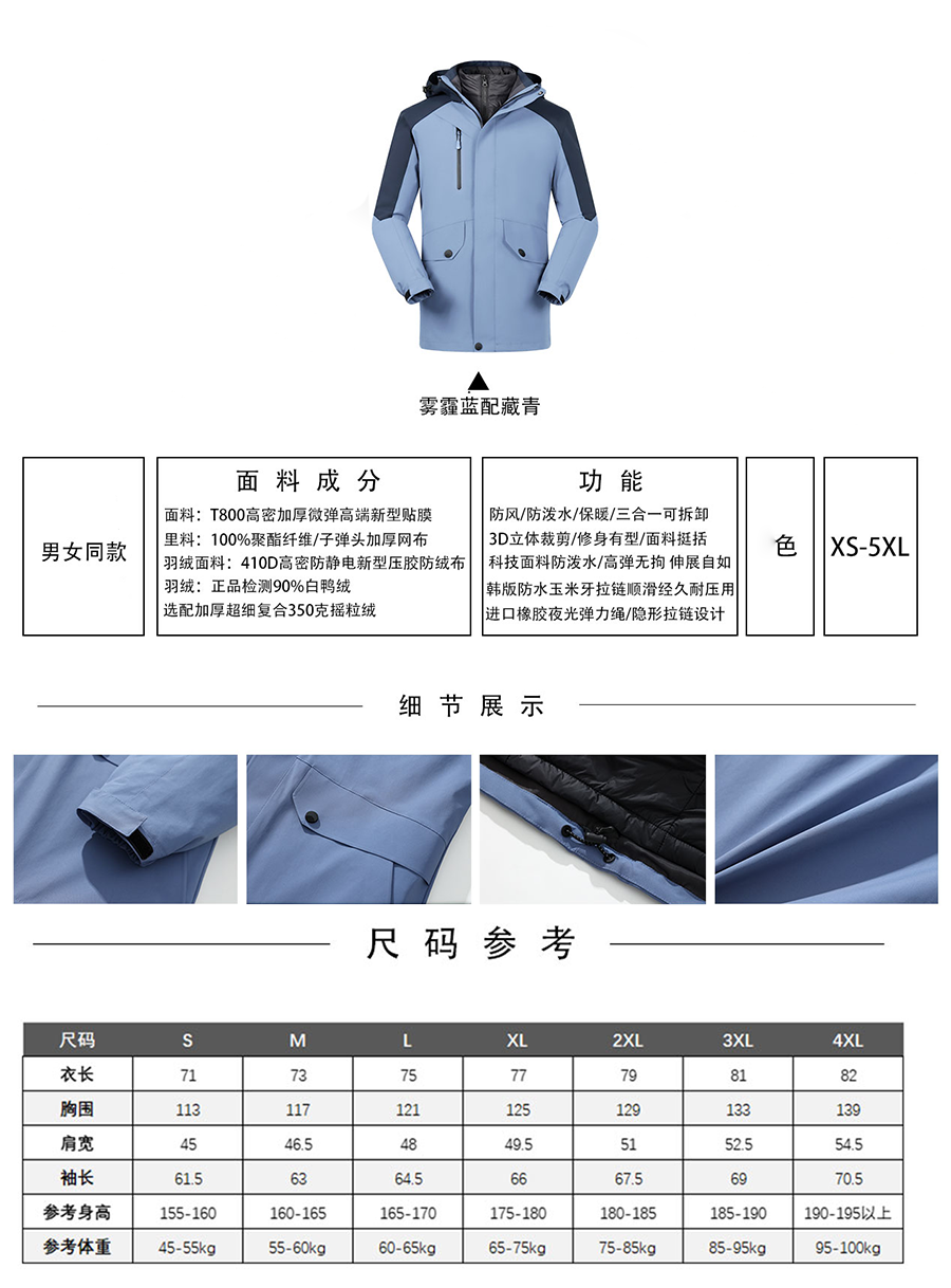 户外冲锋衣男女三合一可拆卸内胆防风防水摇粒绒锋衣 可定制logo (12)