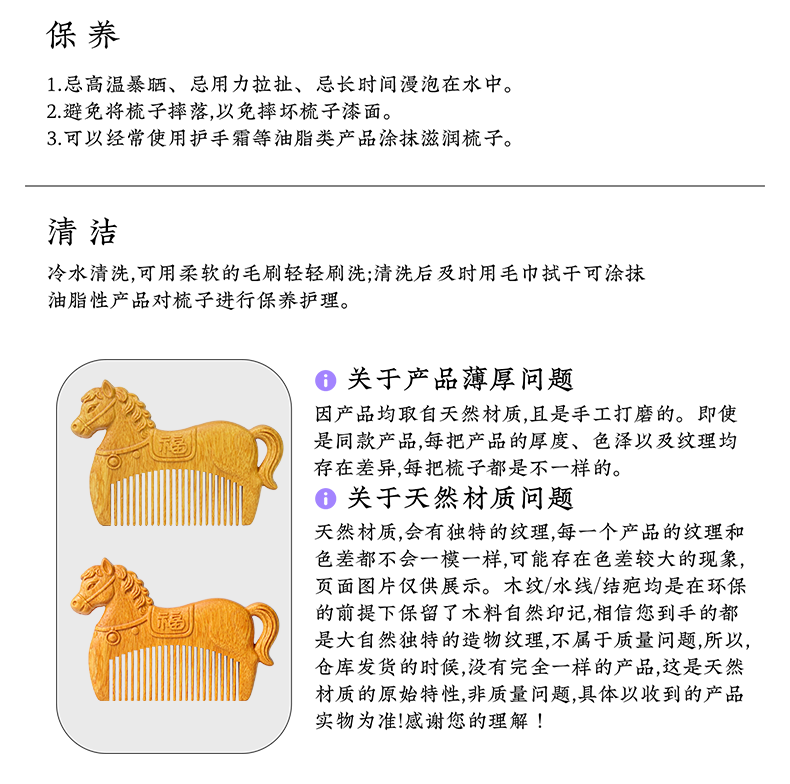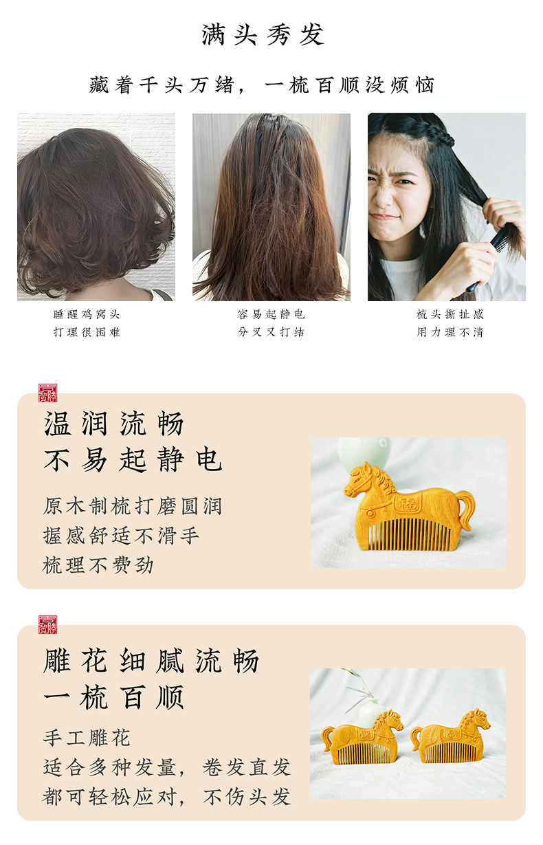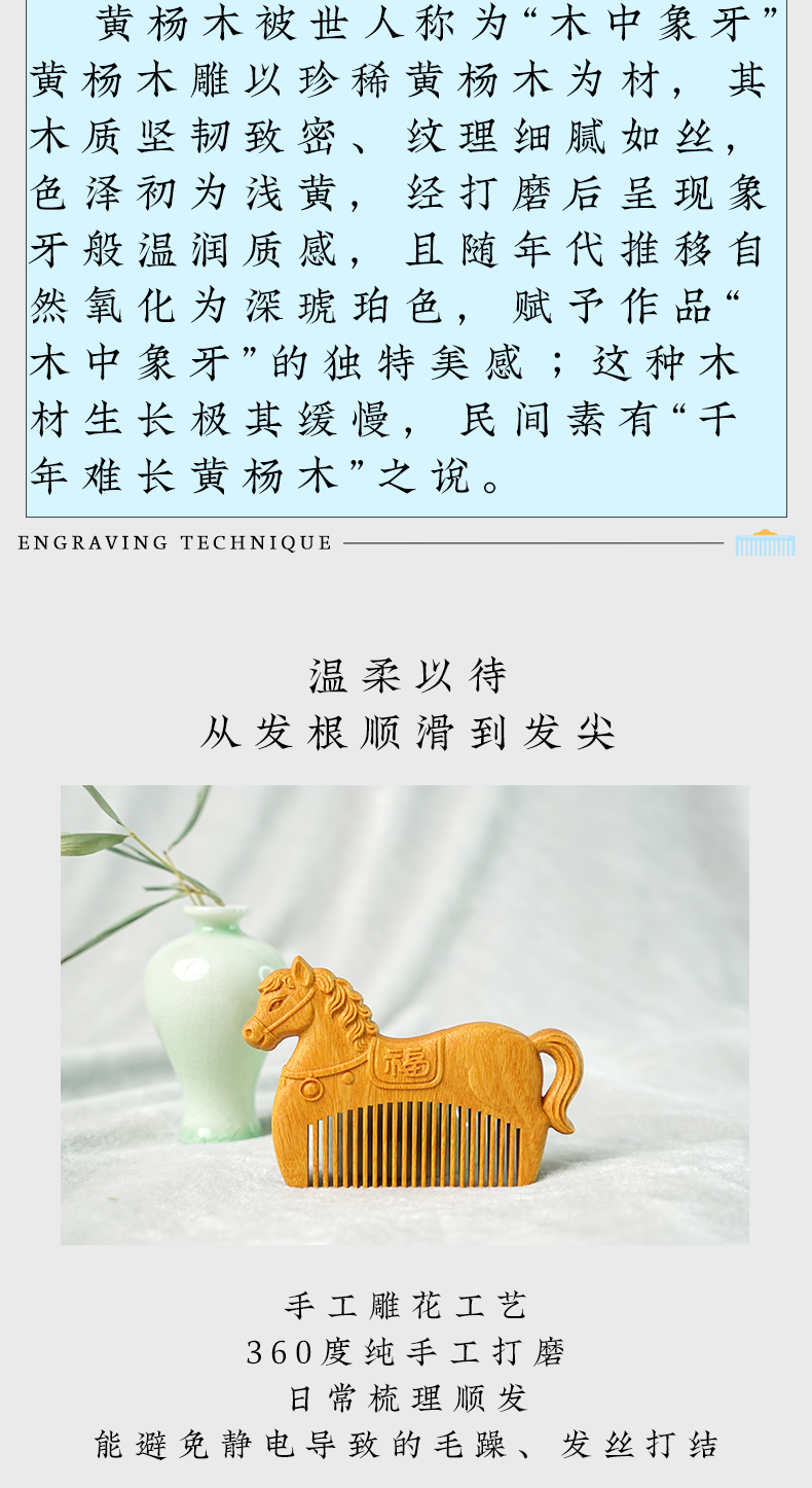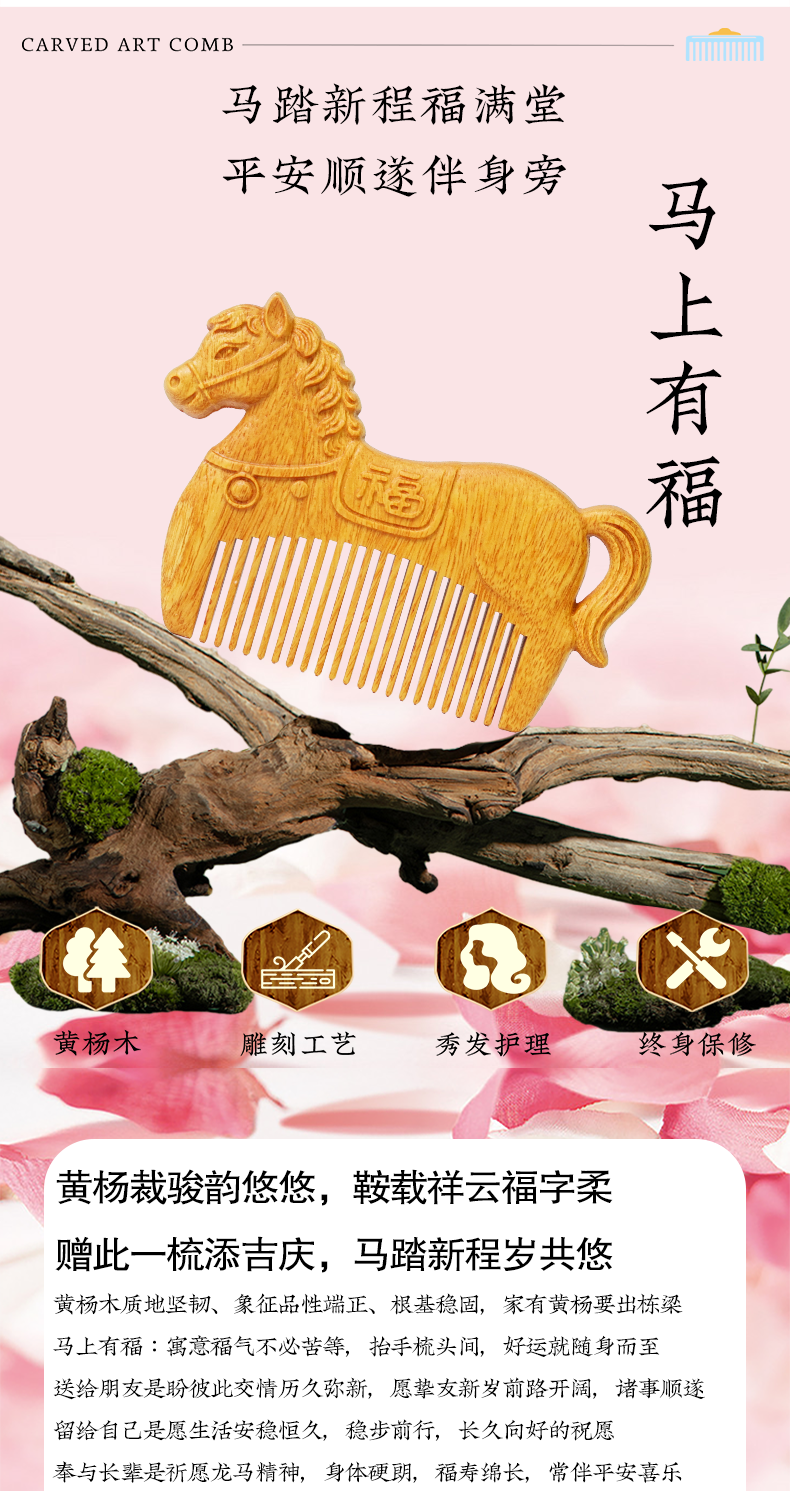 周广胜马年限定黄杨木雕刻马上有福便携实木梳子男女通用创意礼品